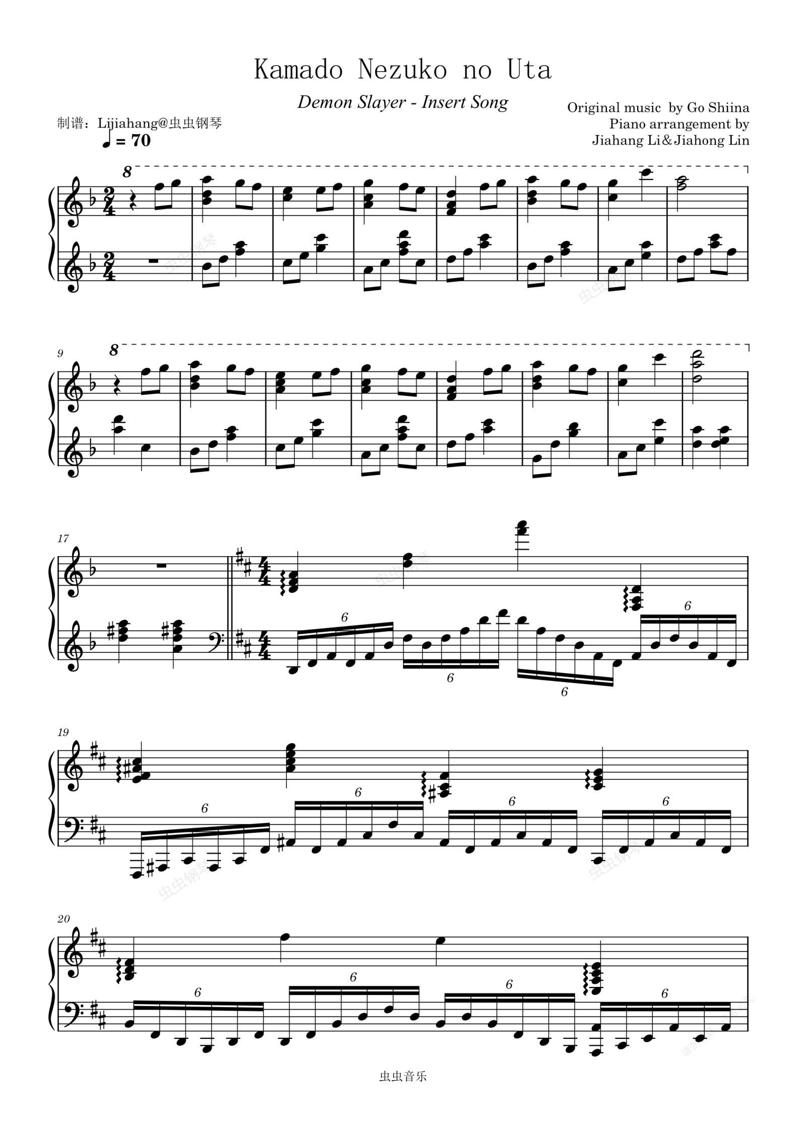 钢琴谱:灶门祢豆子之歌