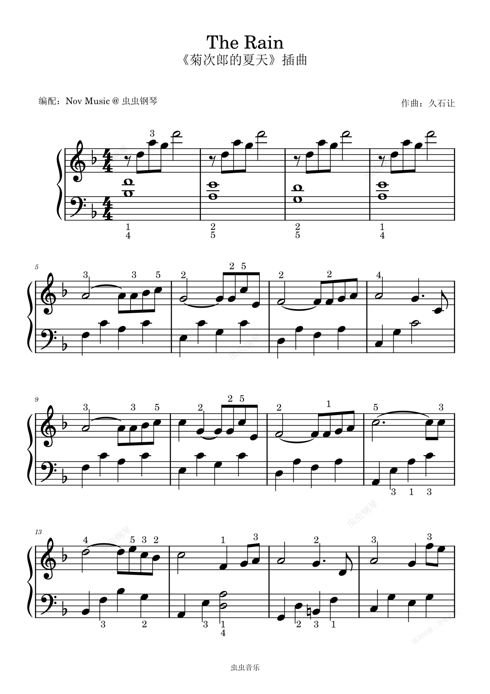钢琴谱:The Rain - 菊次郎的夏天配乐