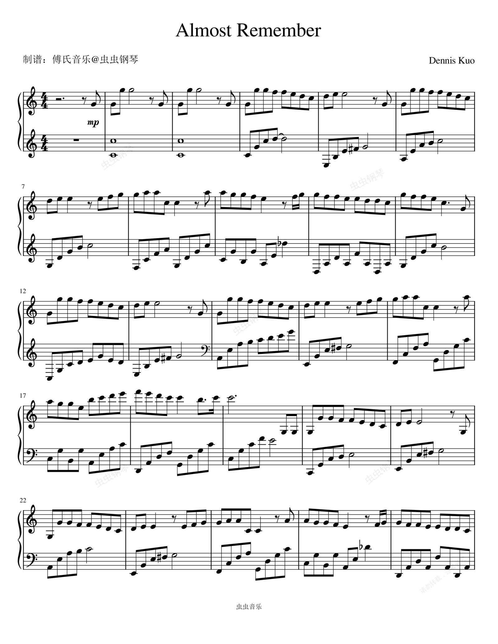 钢琴谱:Almost Remember (接近回忆)  - Dennis Kuo【C调】