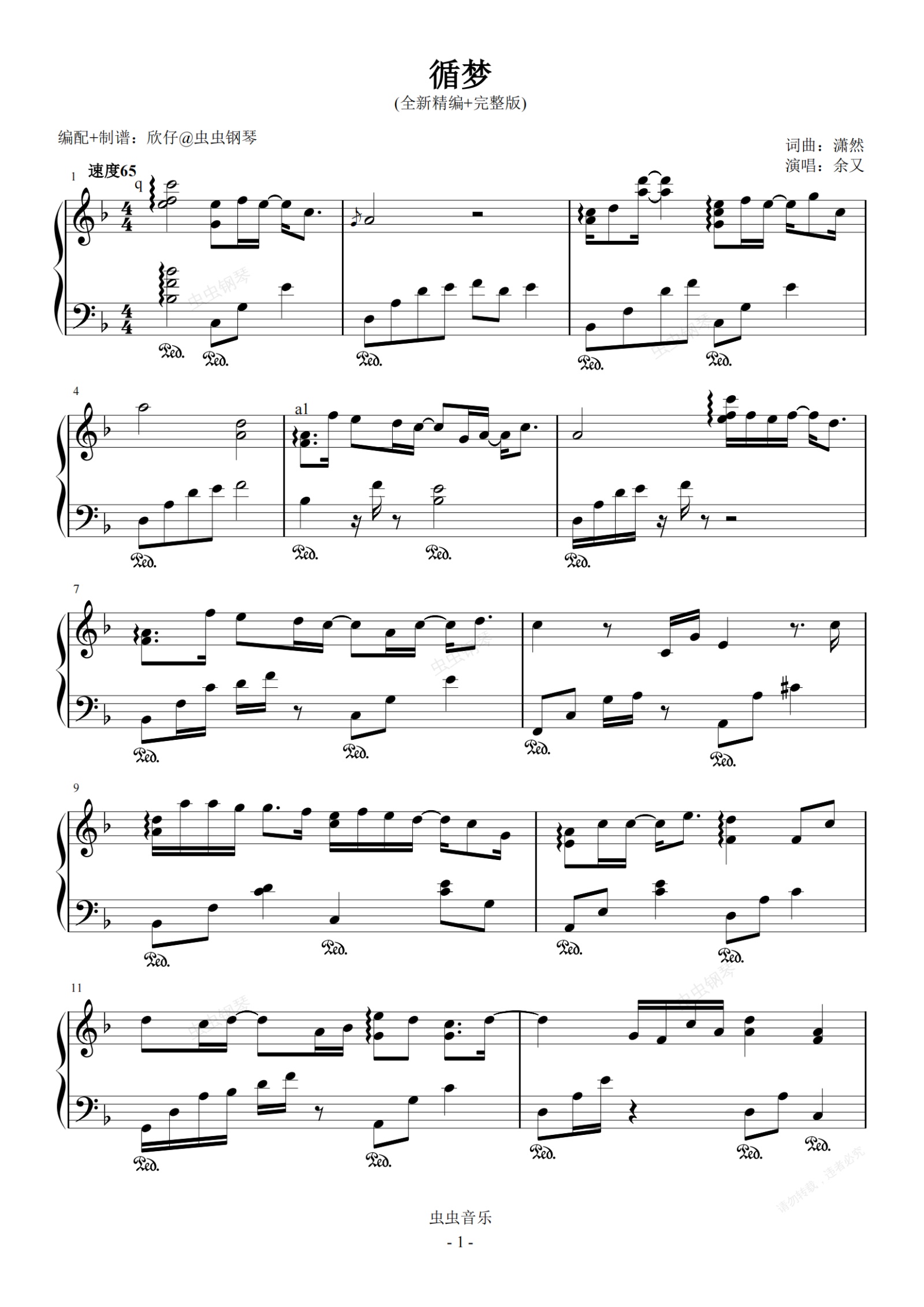 钢琴谱:余又-d《循梦》(全新精编+完整版)