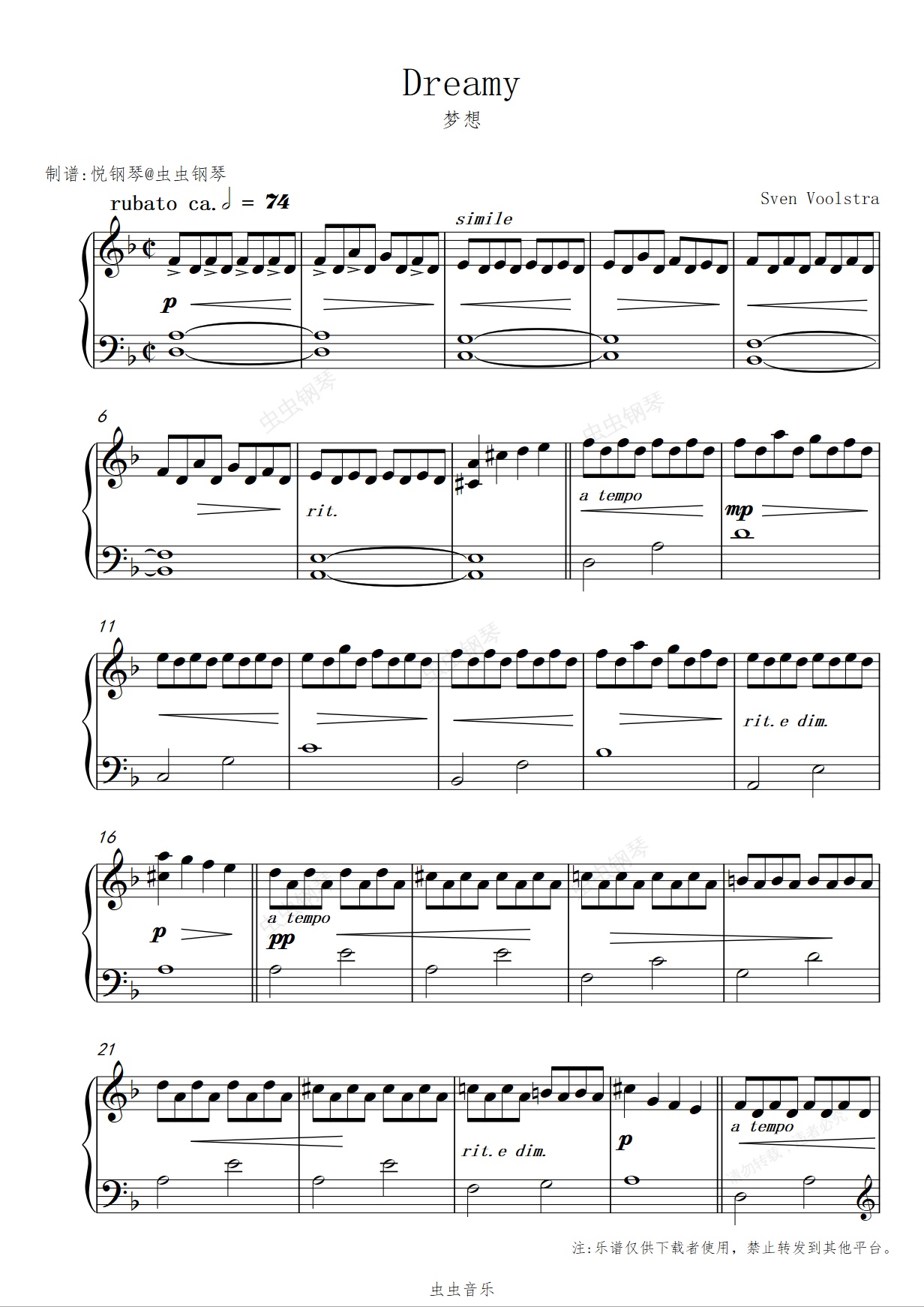 钢琴谱:梦想//Dreamy【叙事-思绪】