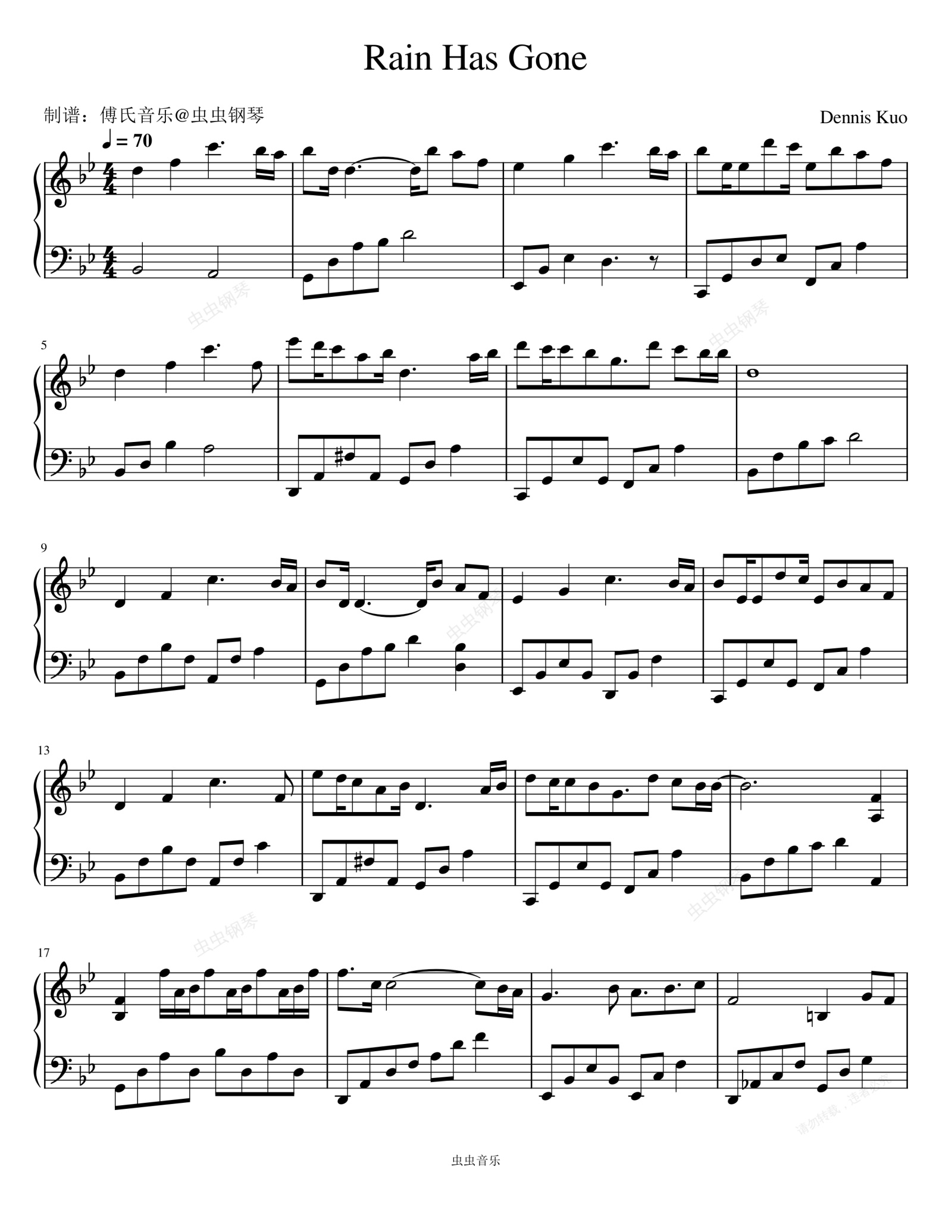 钢琴谱:Rain Has Gone (雨停了) - Dennis Kuo