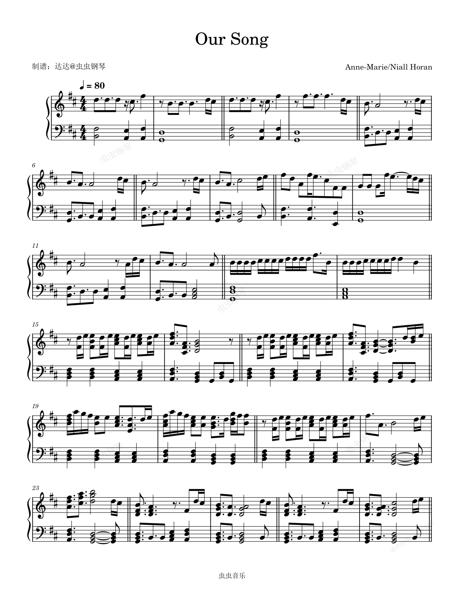 钢琴谱:Our Song - Anne-Marie/Niall Horan