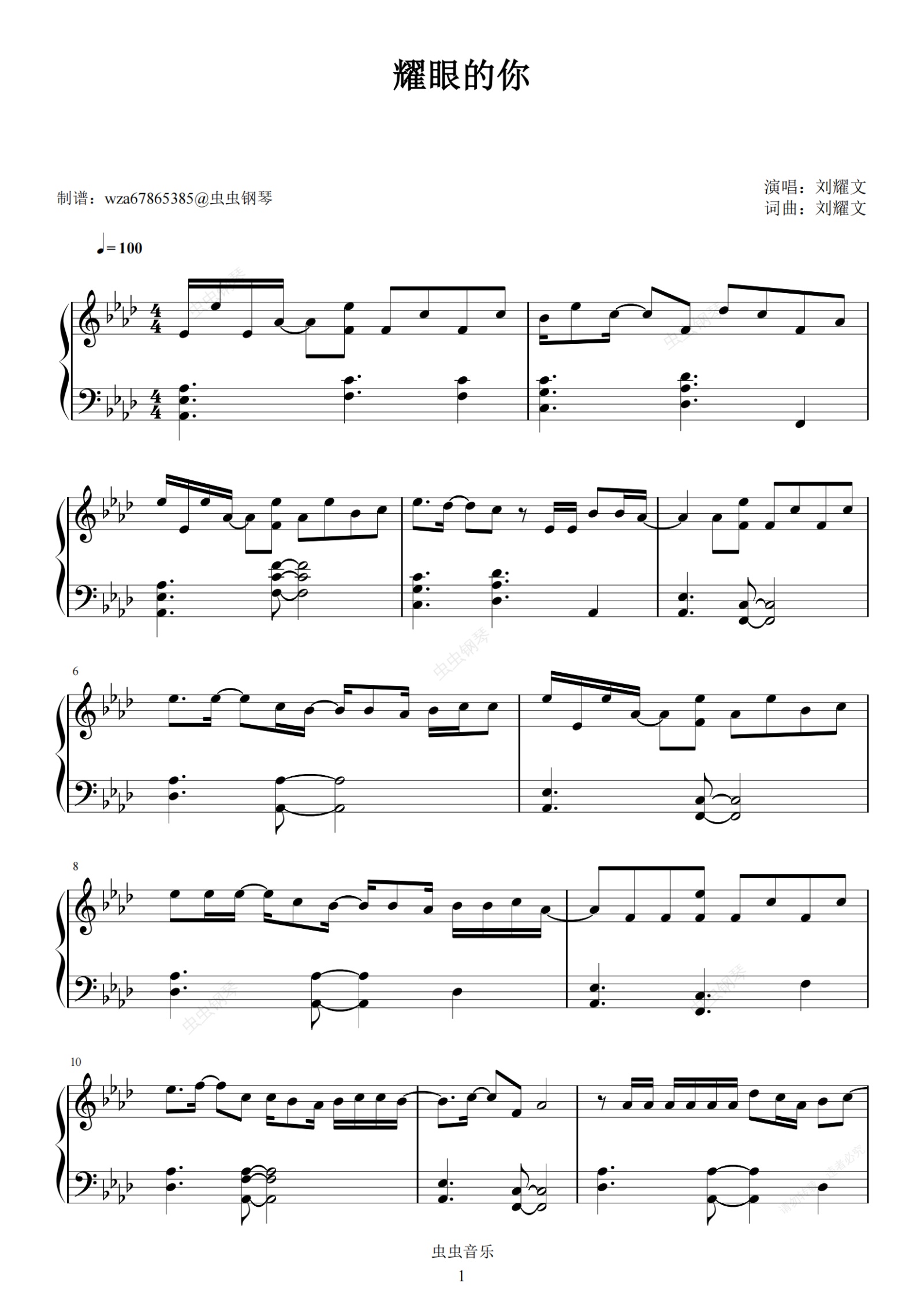 钢琴谱:耀眼的你