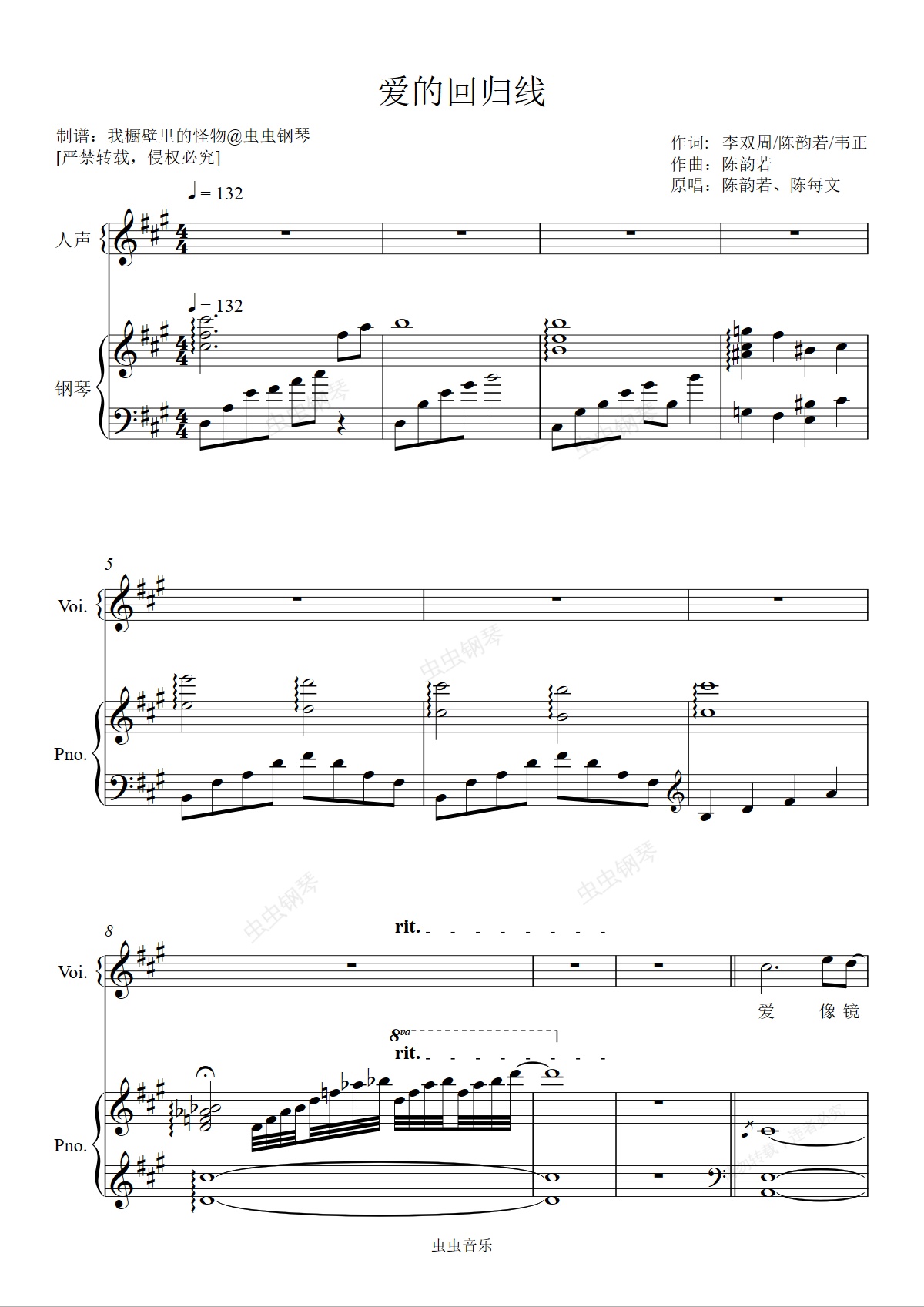 钢琴谱:【高度还原弹唱谱】爱的回归线 亲爱的宛瑜,这么多年我终于理解你的离开