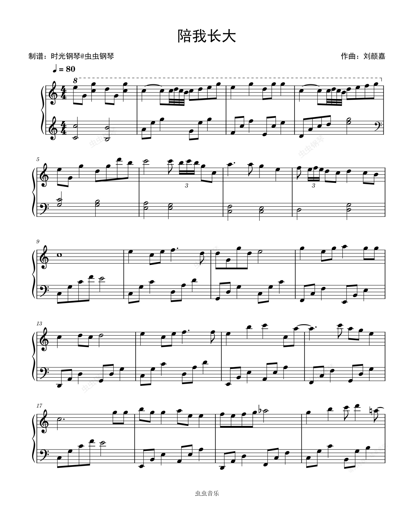 钢琴谱:陪我长大 《快把我哥带走》段奥娟 简单好听