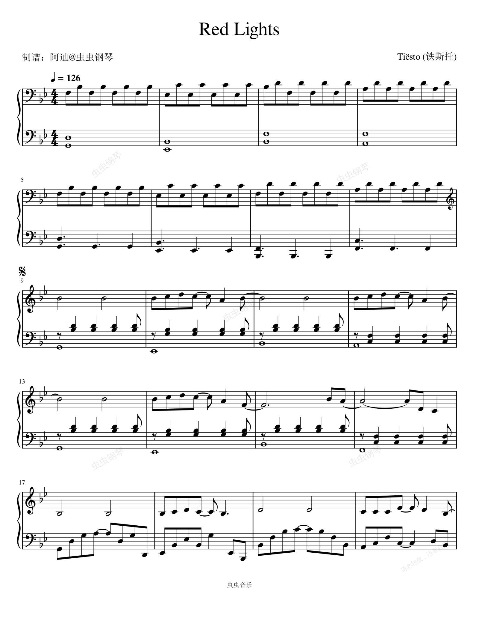 钢琴谱:Red Lights - Tiësto (铁斯托)