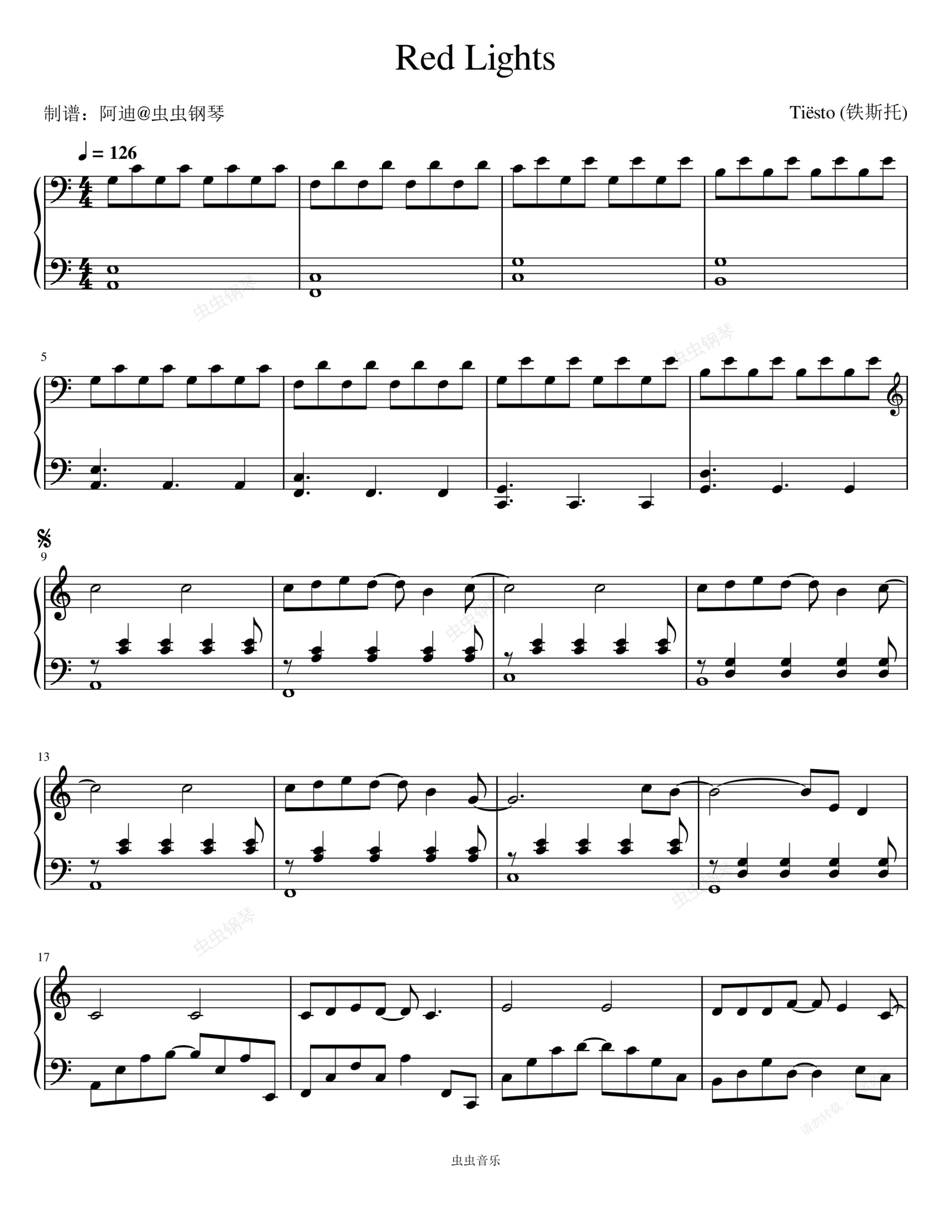 钢琴谱:Red Lights - Tiësto (铁斯托)