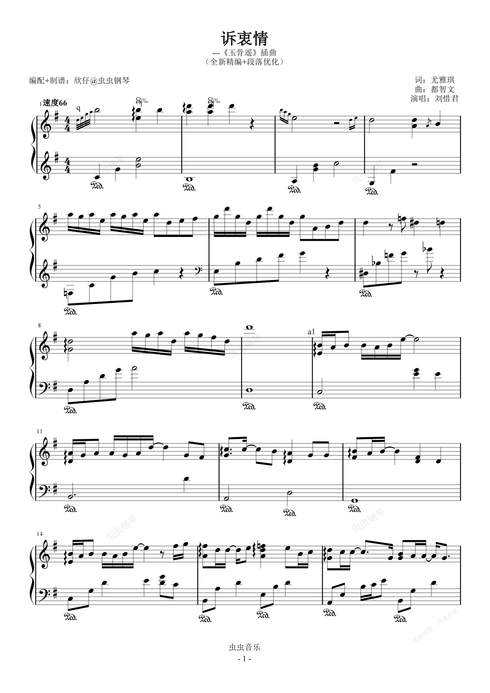 钢琴谱:刘惜君-G《诉衷情》(《玉骨遥》插曲,段落优化)