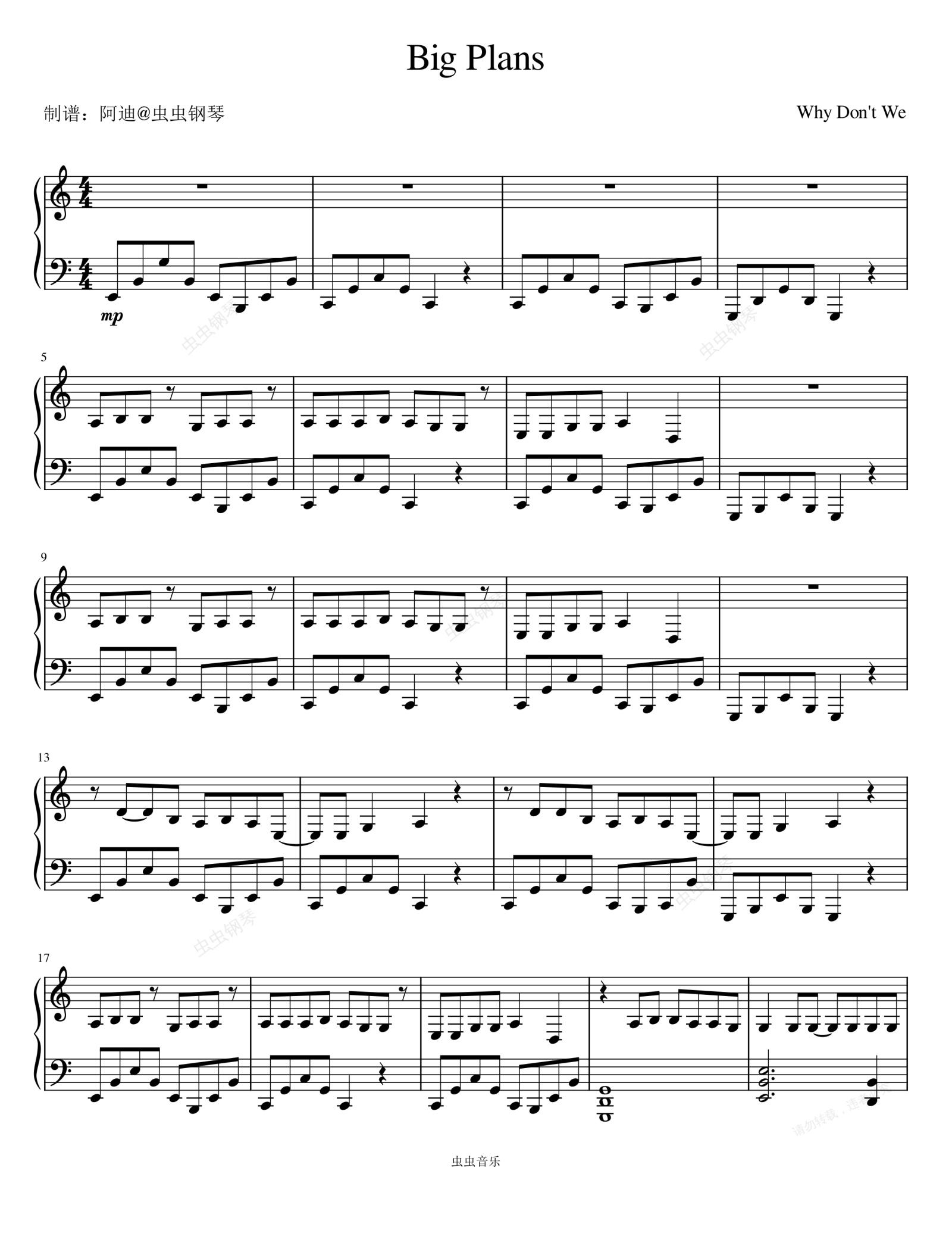 钢琴谱:Big Plans - Why Don't We