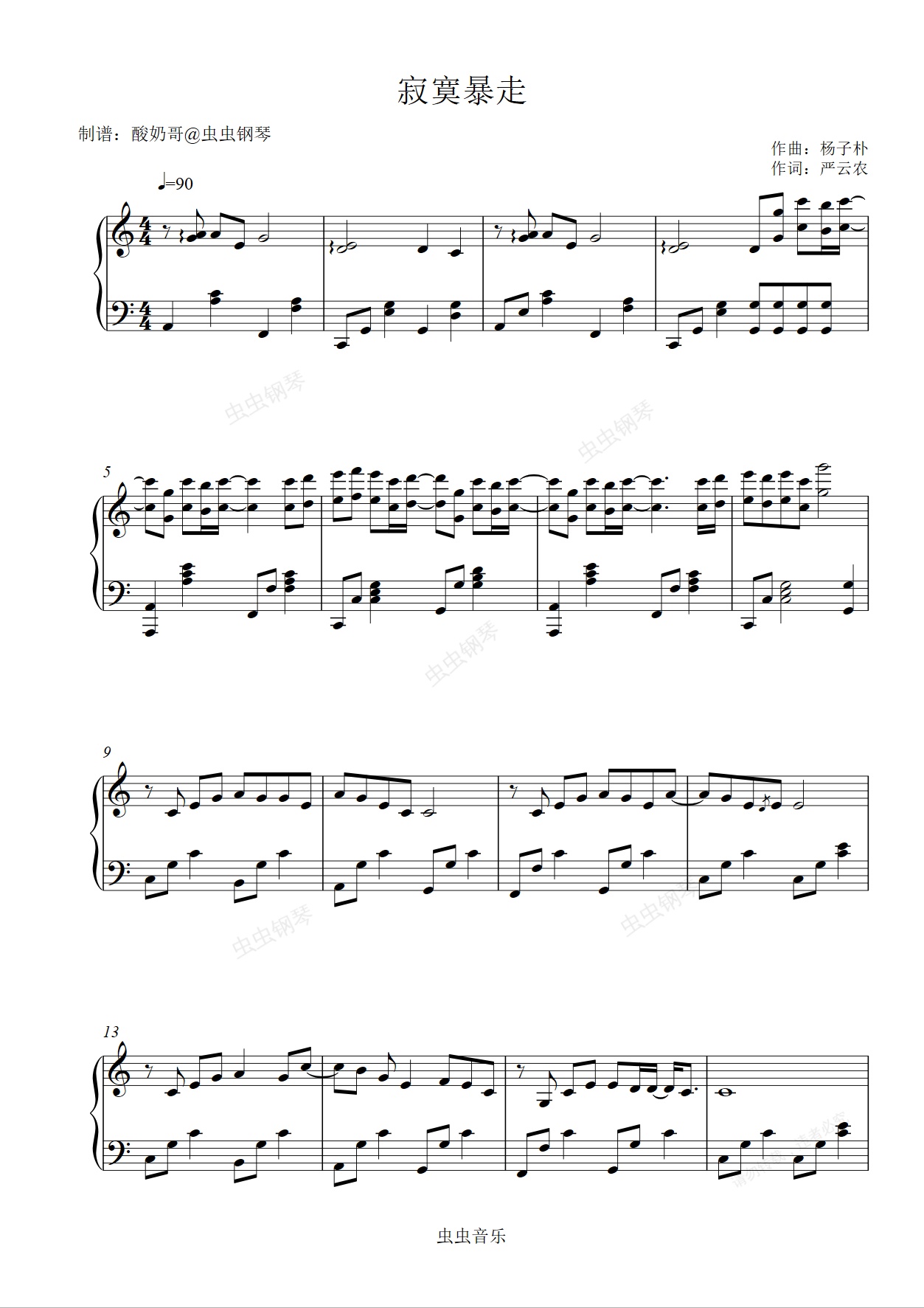 钢琴谱:寂寞暴走-飞轮海