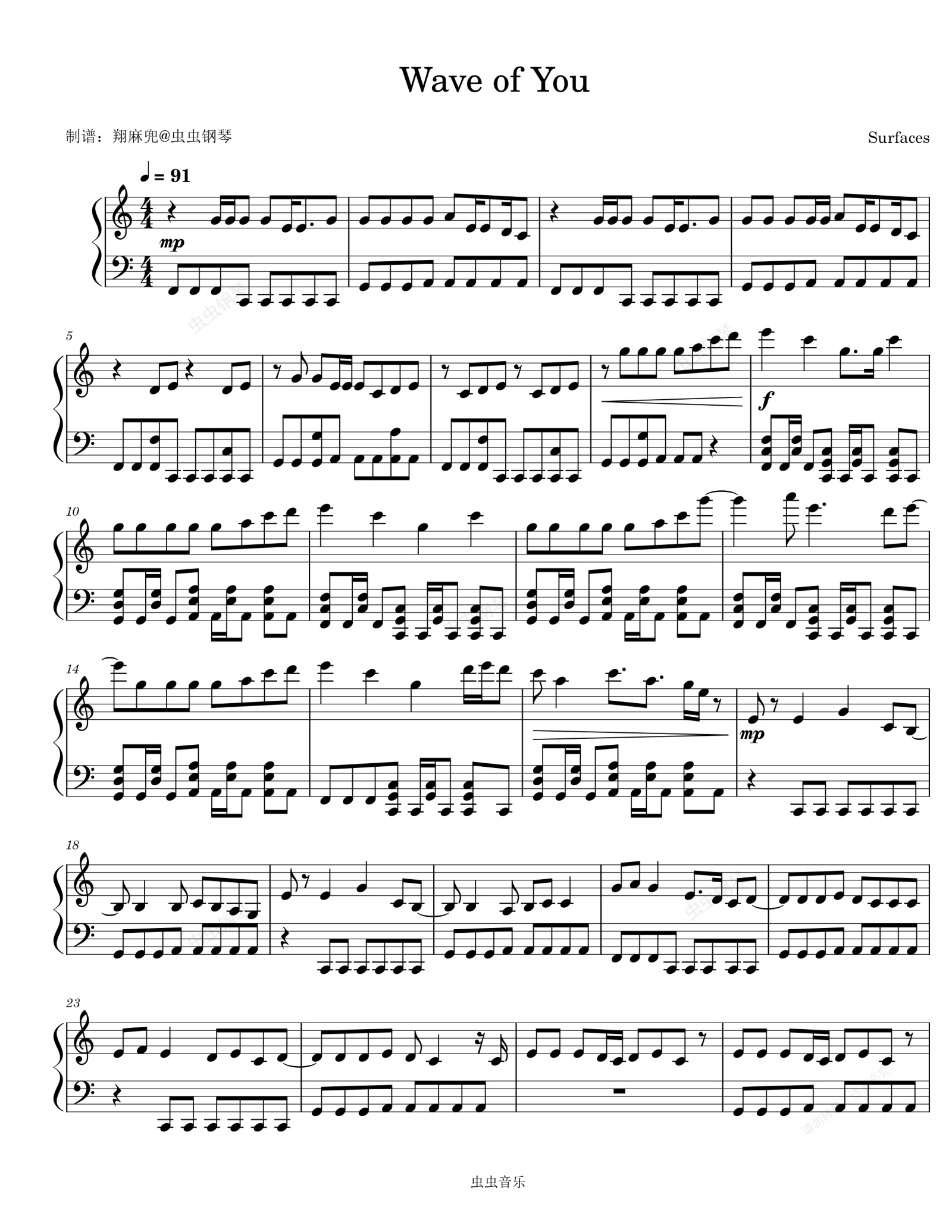 钢琴谱:Wave of You - Surfaces