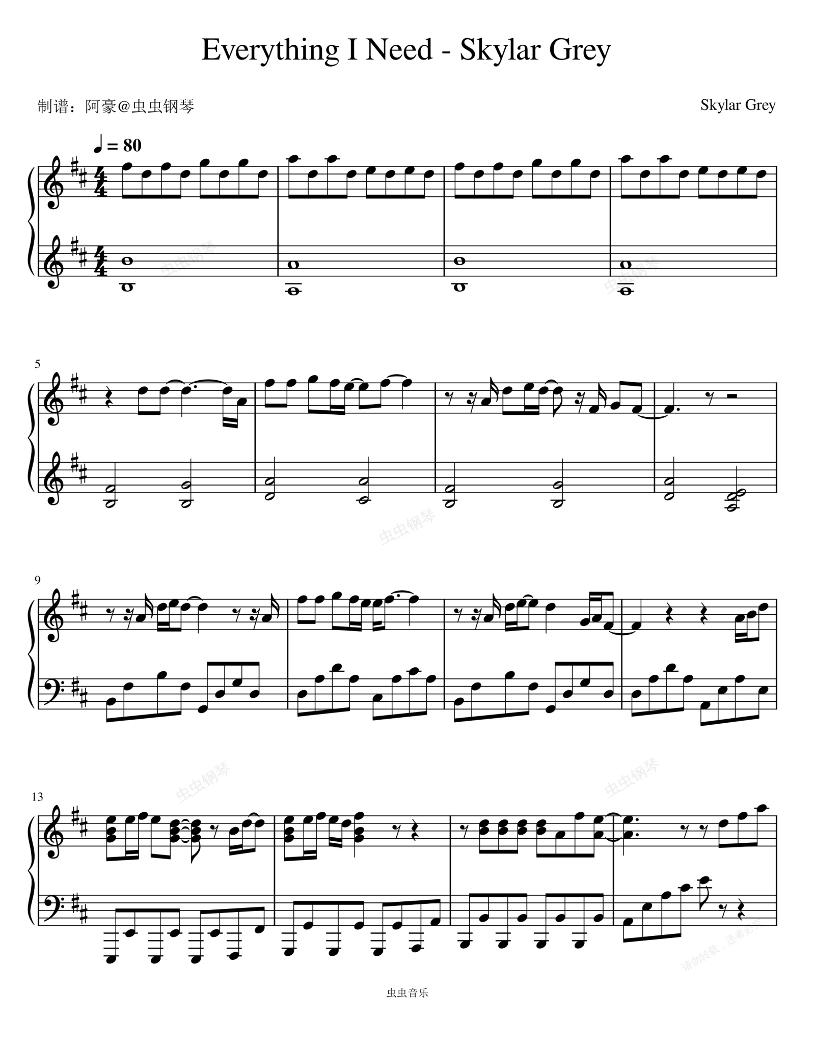 钢琴谱:Everything I Need (Film Version) - Skylar Grey