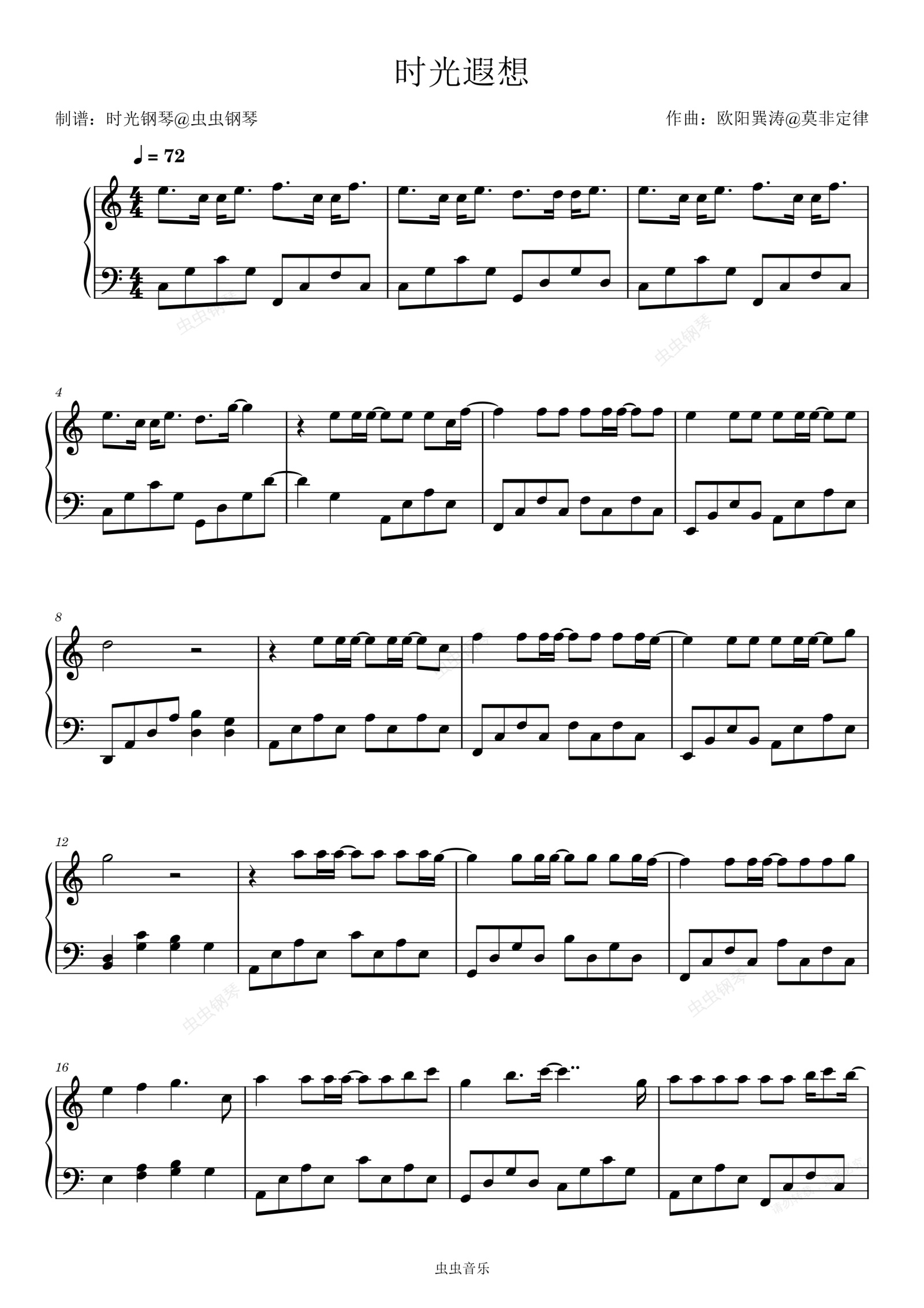 钢琴谱:时光遐想  《你好旧时光》许飞  简单好听