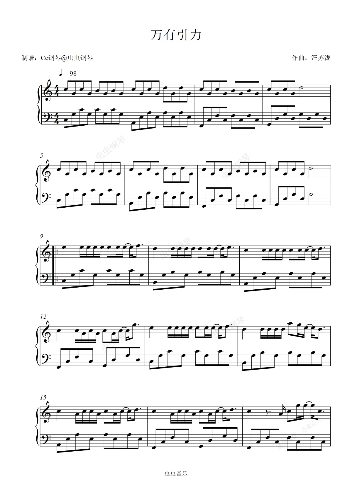 钢琴谱:万有引力 C调 好听易上手