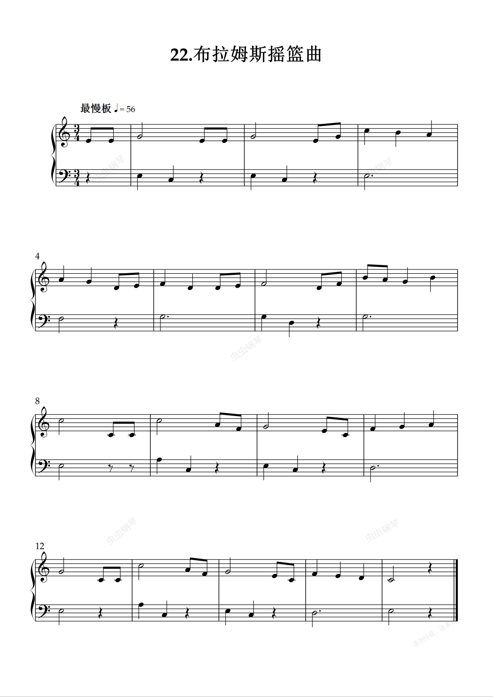 钢琴谱:22.布拉姆斯摇篮曲