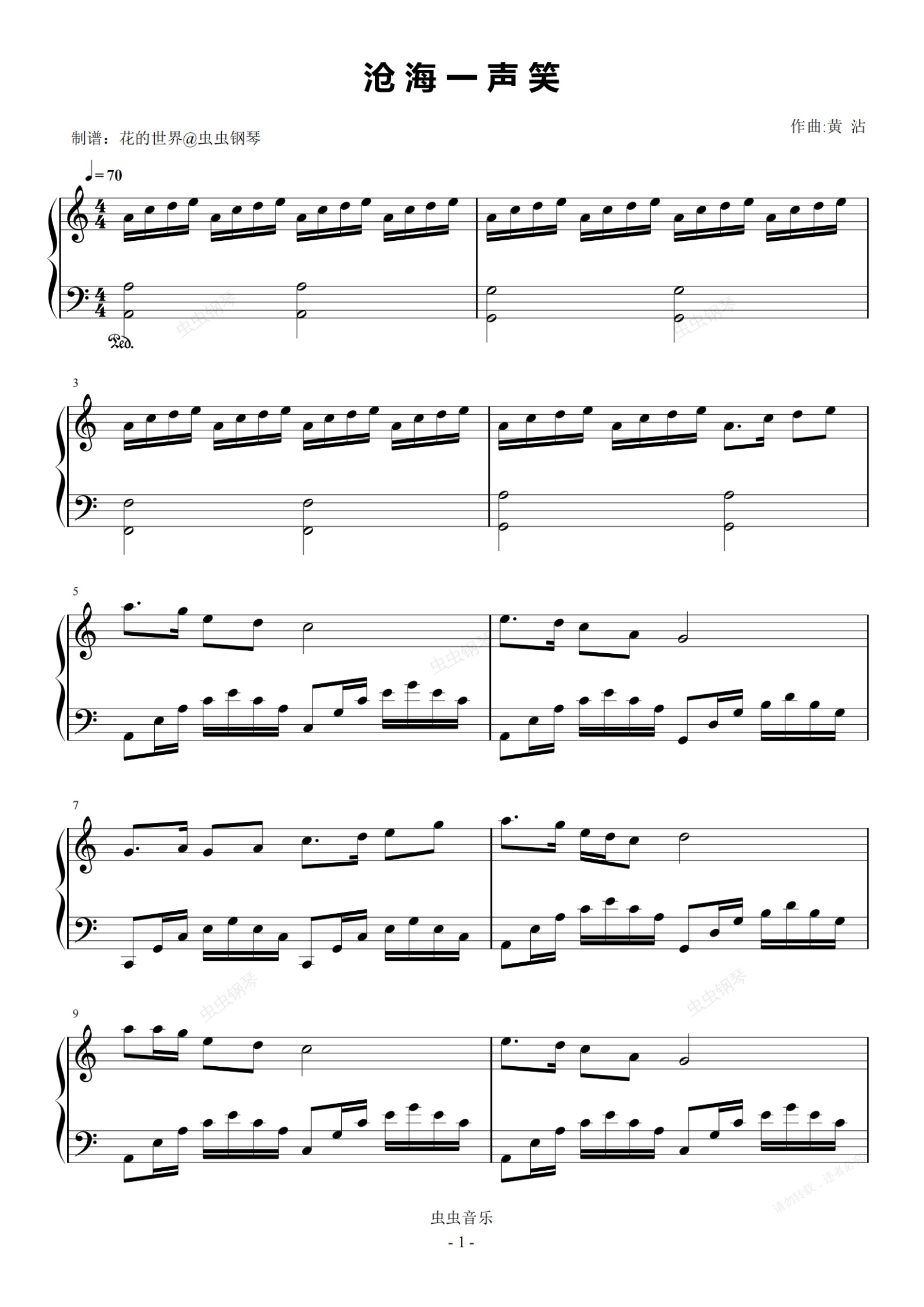 钢琴谱:沧海一声笑 C调简易版 许冠杰