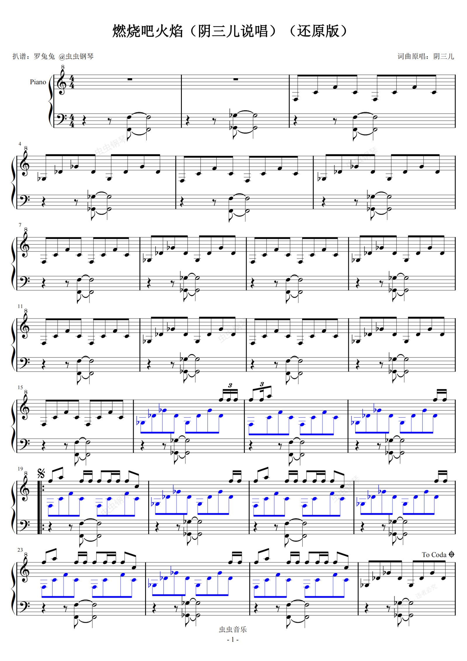 钢琴谱:燃烧吧火焰(阴三儿说唱)(还原版)
