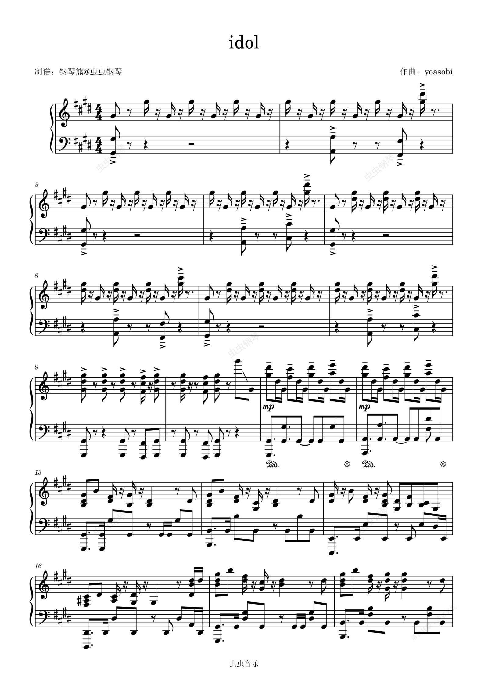 钢琴谱:Idol(偶像)我推的孩子OP 粉丝点谱成功~