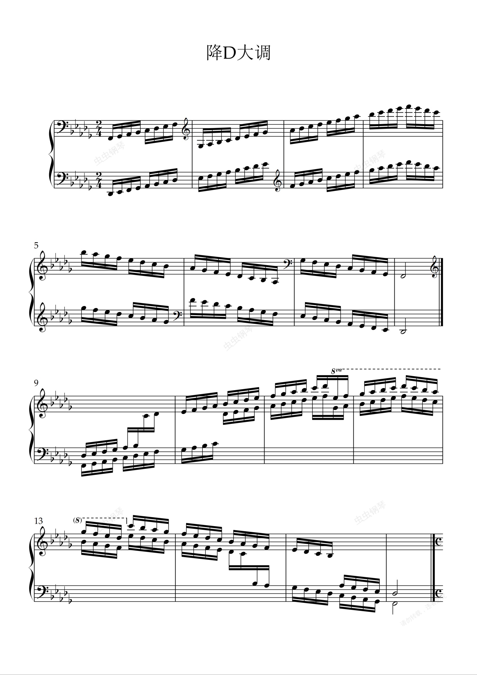 钢琴谱:降D大调(三度音阶,六度音阶,主和弦)原书89页