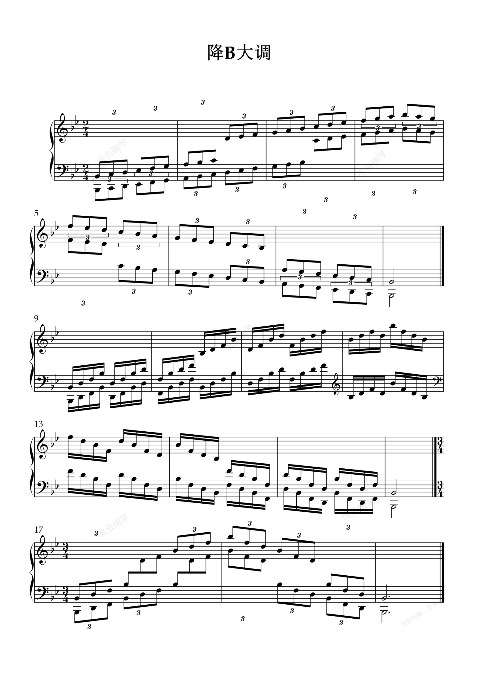 钢琴谱:降B大调(音阶,分解和弦短琶音,主和弦长琶音),原书29页
