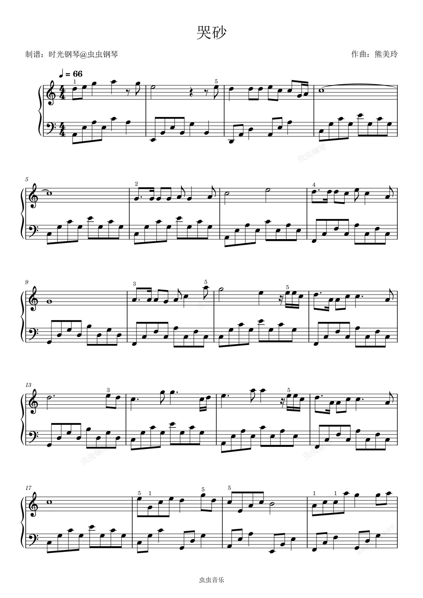 钢琴谱:哭砂(秋来秋去) 张惠妹 简单好听