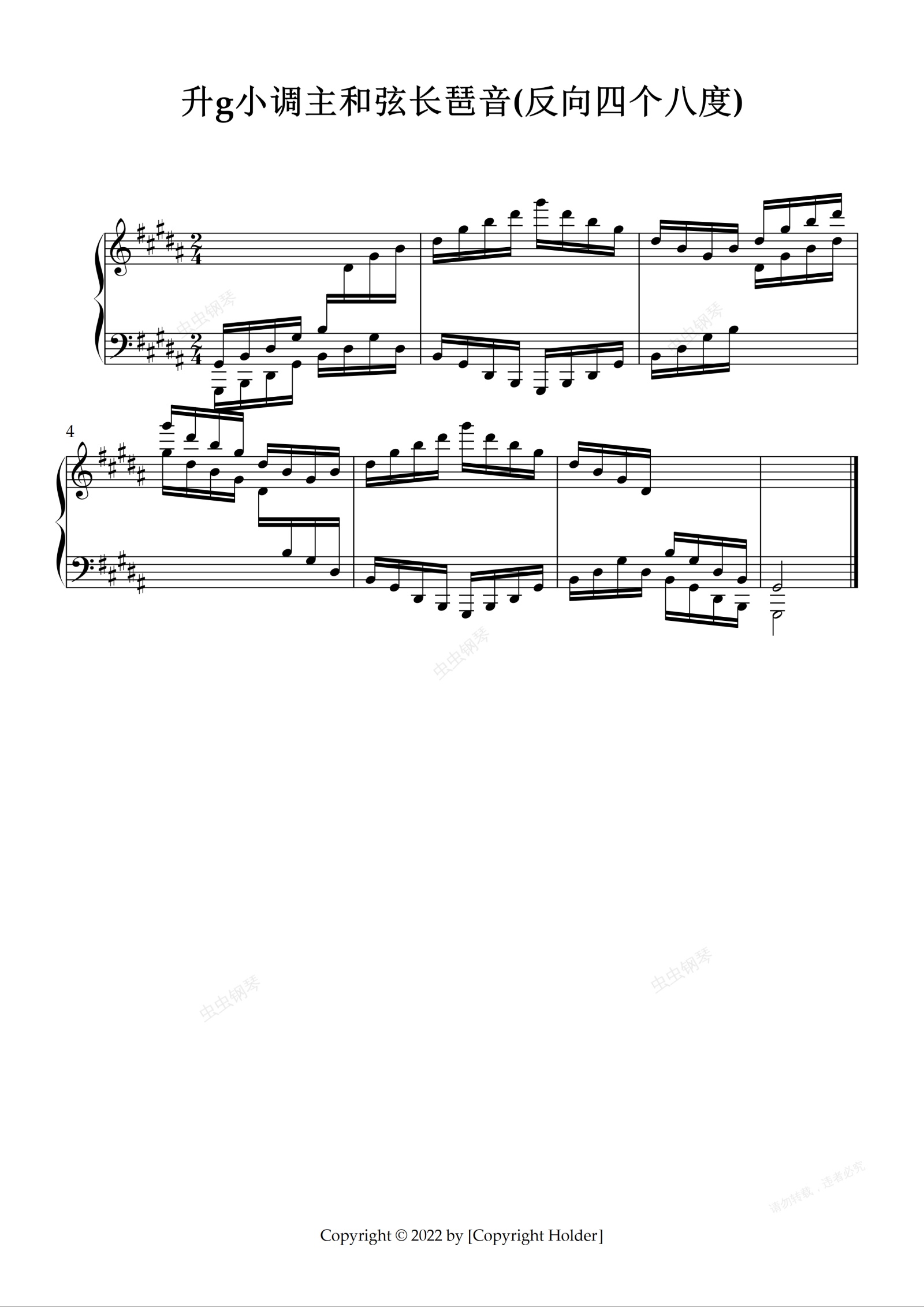 钢琴谱:升g小调主和弦长琶音(反向四个八度)