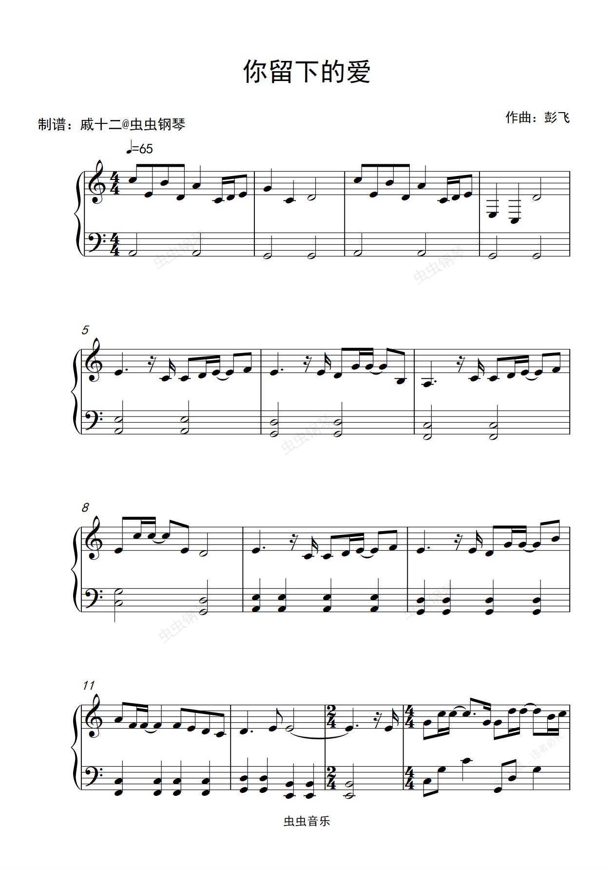 钢琴谱:你留下的爱 《独行月球》主题曲-C调简单版