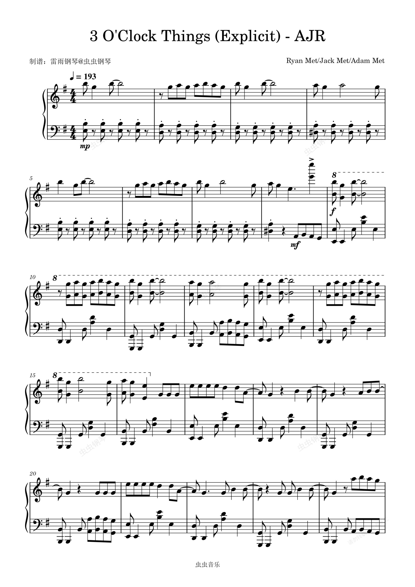 钢琴谱:3 O'Clock Things (Explicit) - AJR