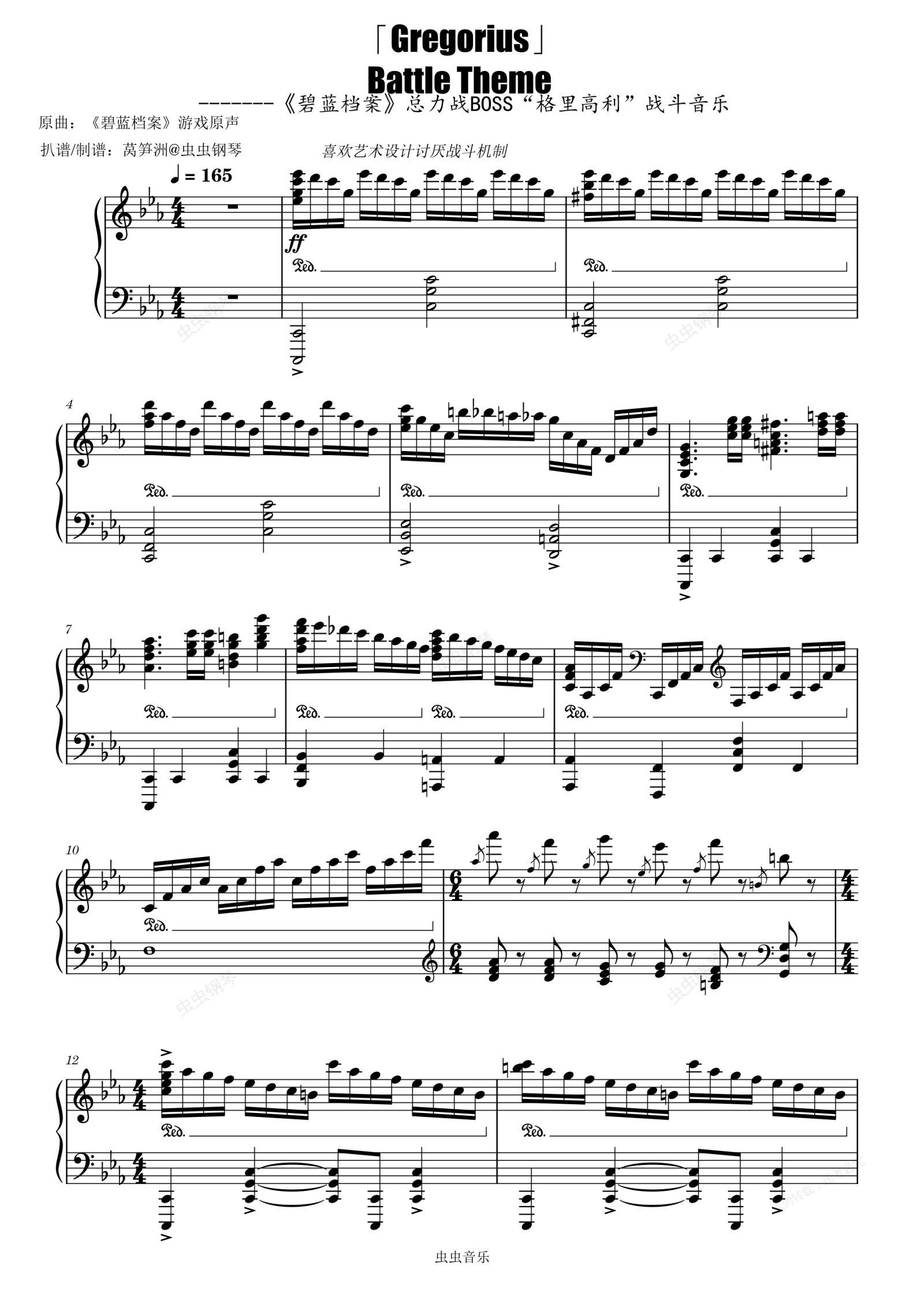 钢琴谱:[GregoriusBattle Theme](《碧蓝档案》总力战BOSS“格里高利”战斗音乐)