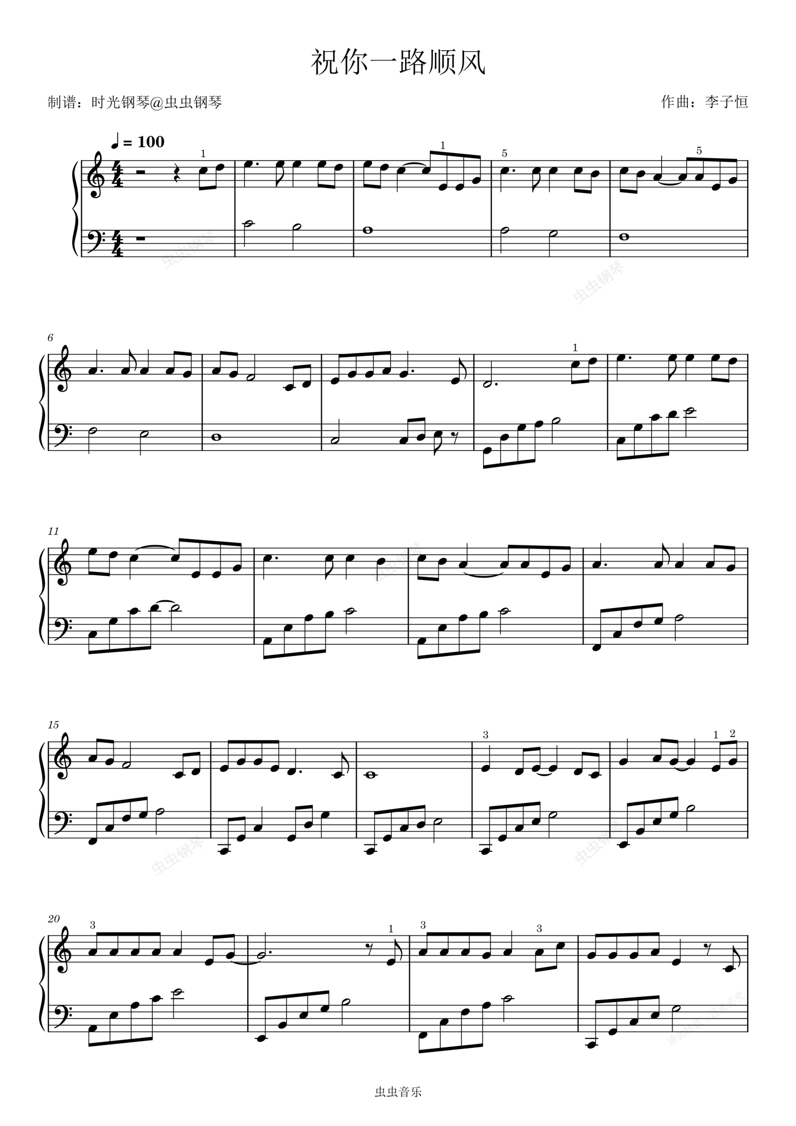 钢琴谱:祝你一路顺风 吴奇隆 简单好听