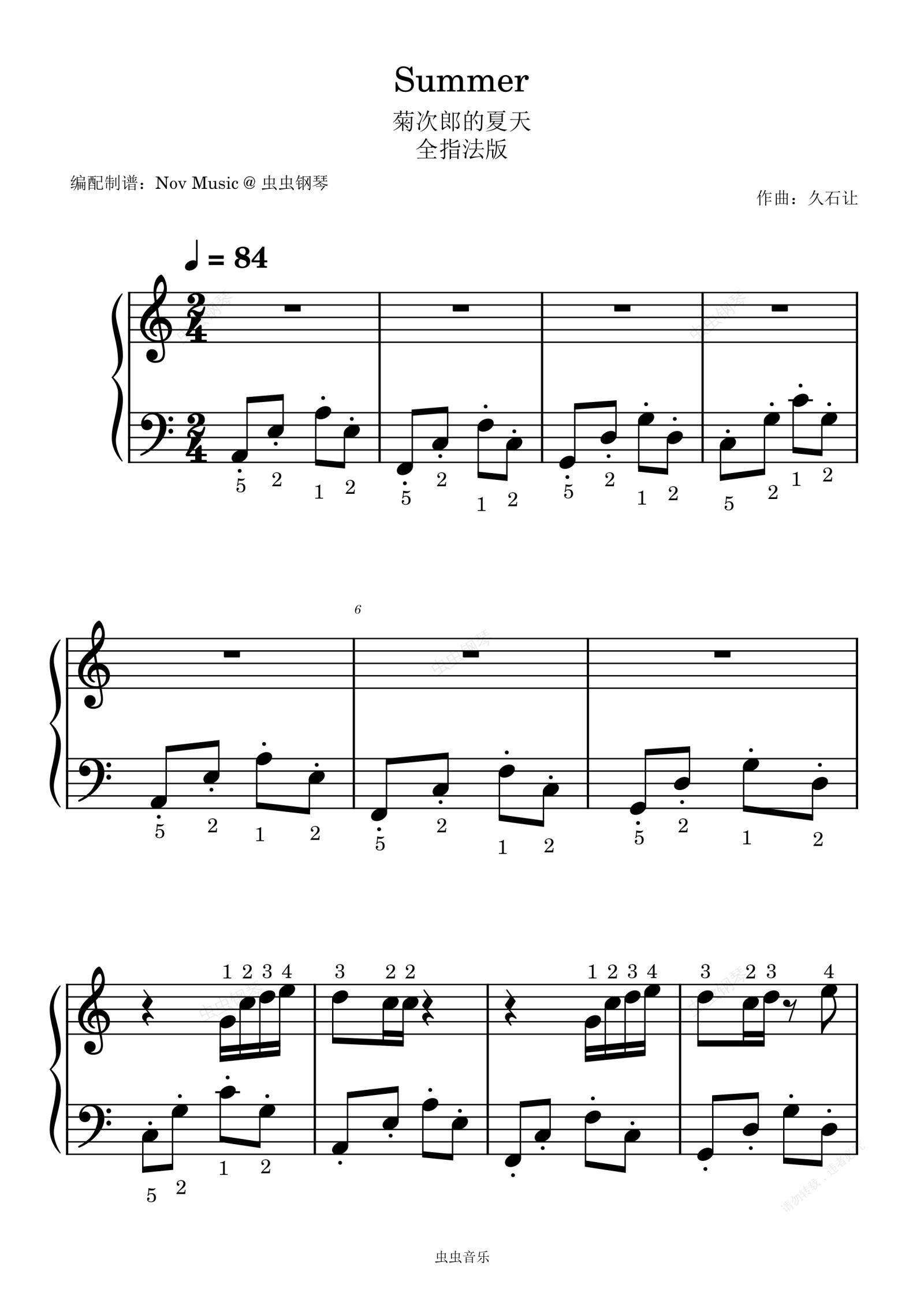 钢琴谱:菊次郎的夏天-全指法版本C调