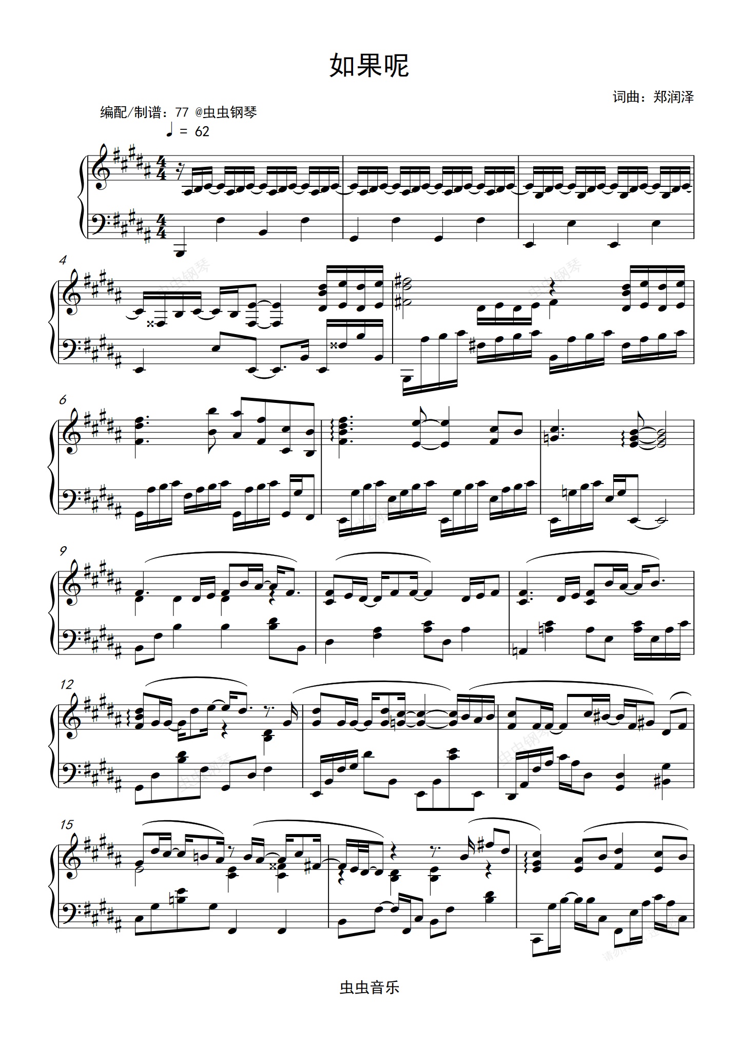 钢琴谱:郑润泽-《如果呢》钢琴独奏谱 原调
