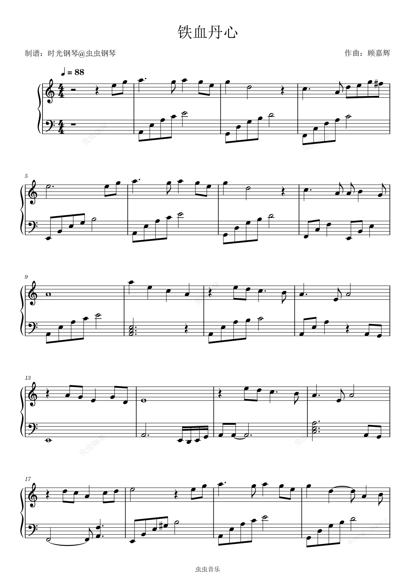钢琴谱:铁血丹心 罗文/甄妮 简单好听