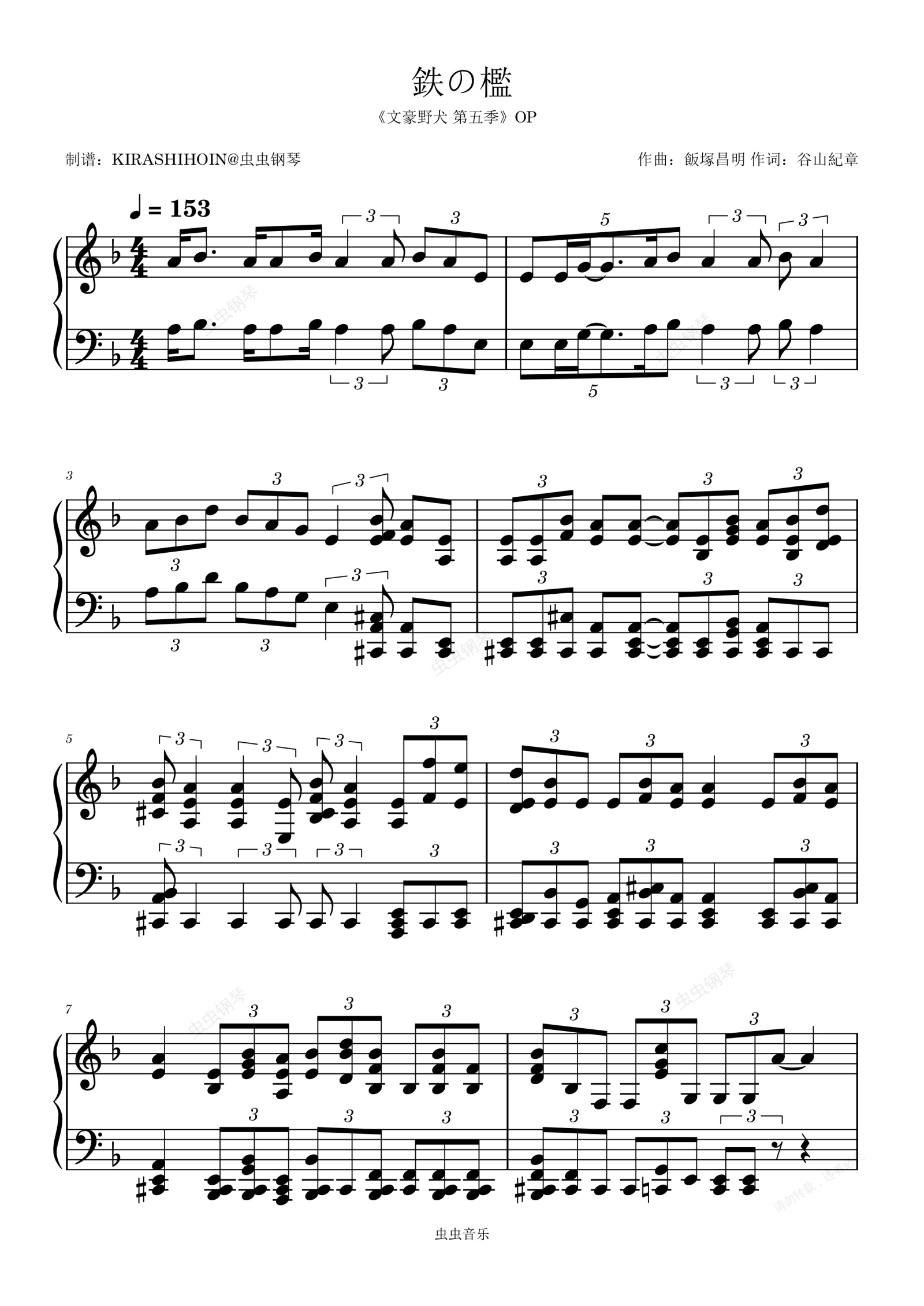 钢琴谱:鉄の檻(《文豪野犬 第五季》OP/片头曲)- GRANRODEO