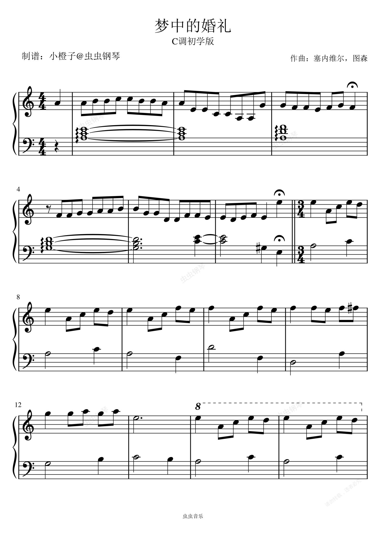 钢琴谱:⟪梦中的婚礼⟫C大调巨简单版+拜厄难度