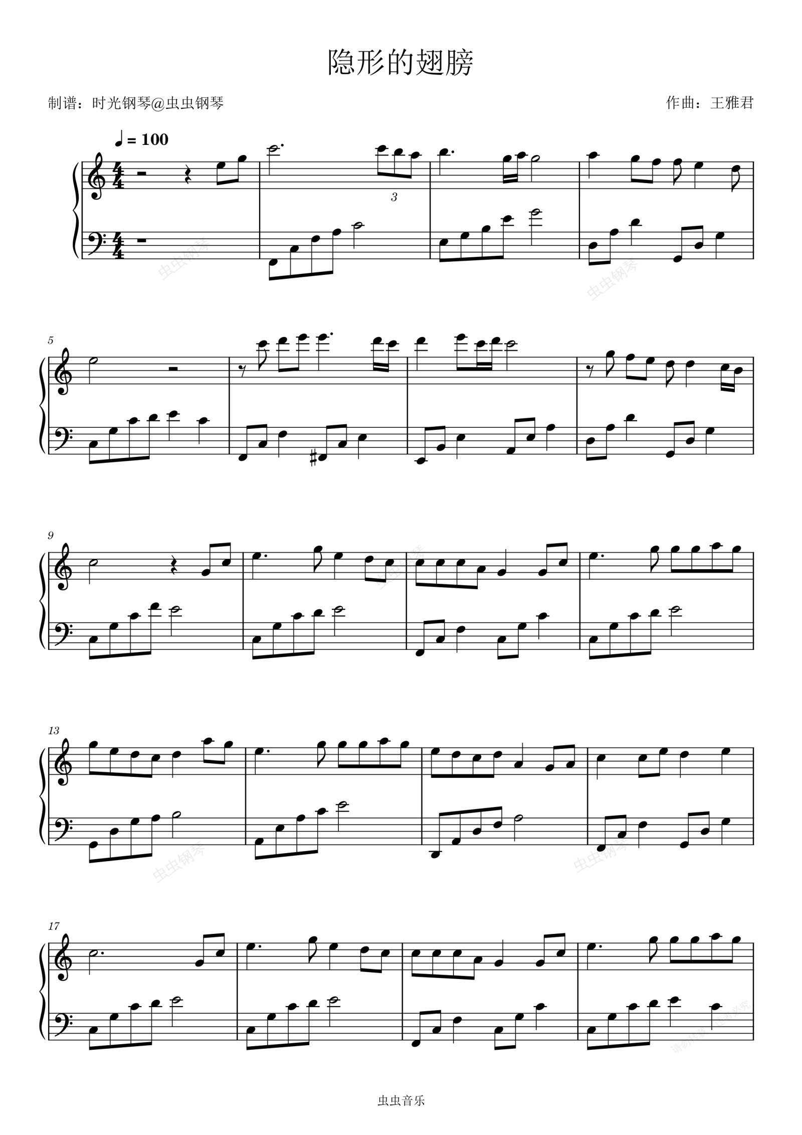 钢琴谱:隐形的翅膀  张韶涵  简单好听