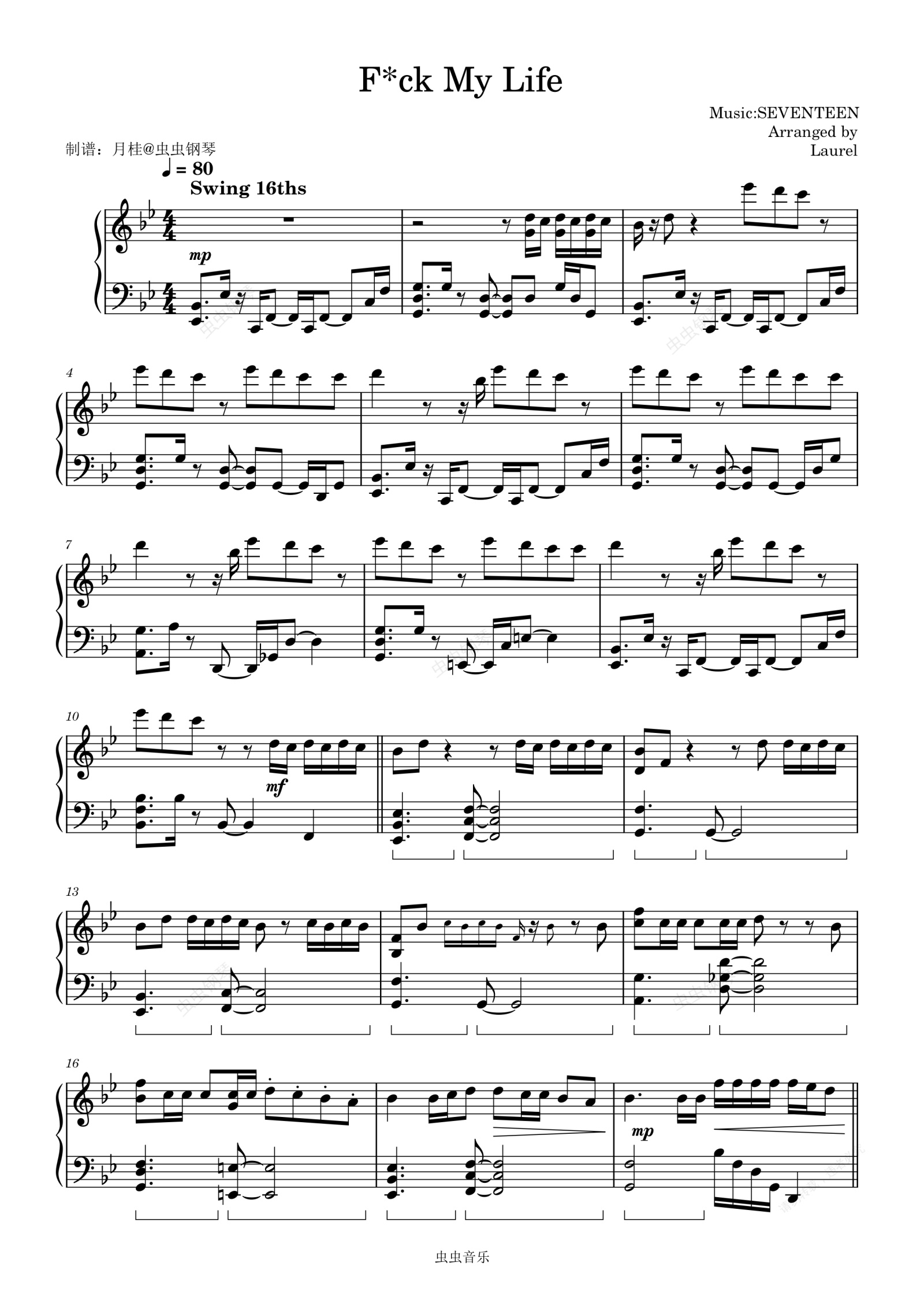 钢琴谱:F*ck My Life-SEVENTEEN专辑《FML》收录曲