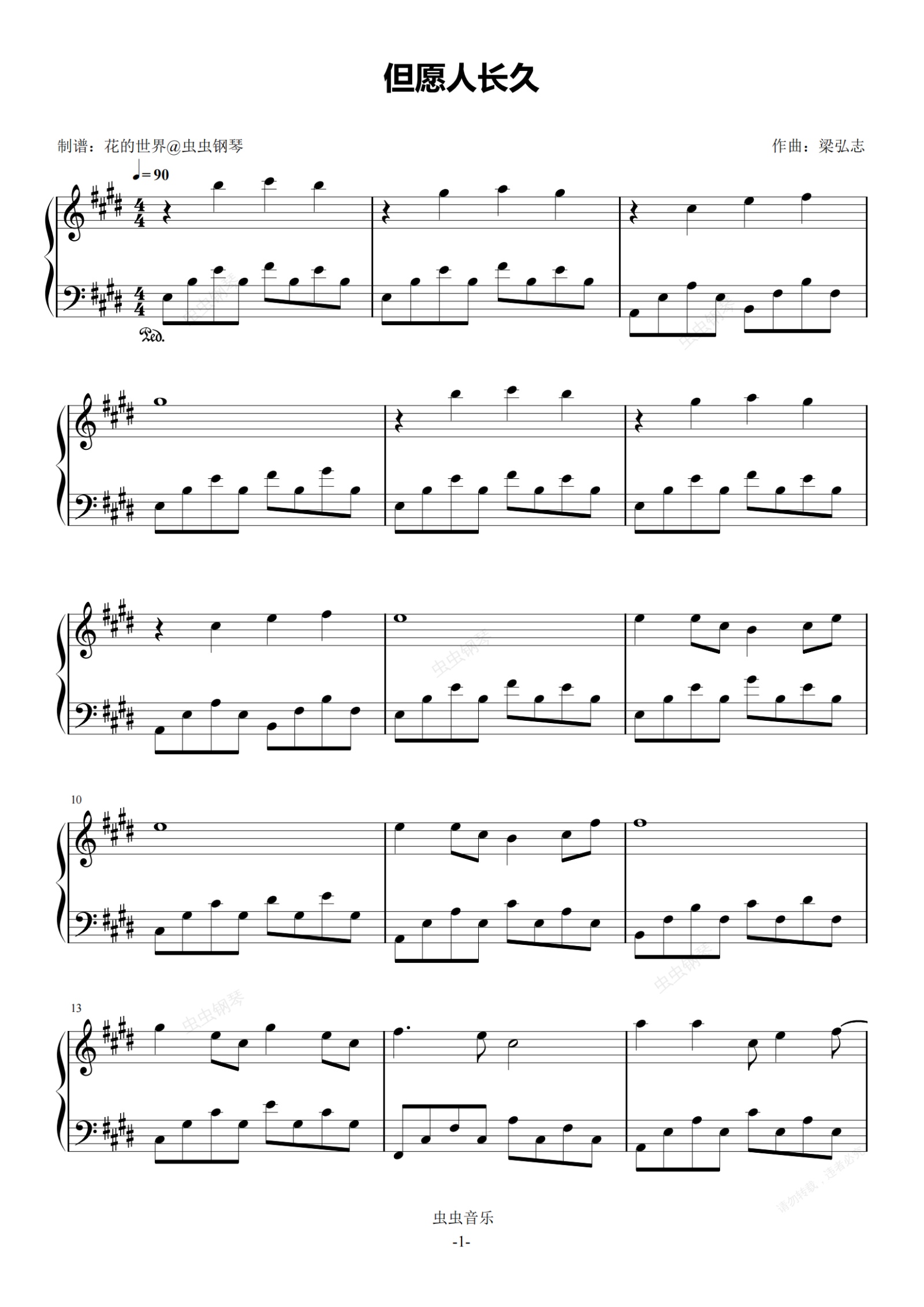 钢琴谱:但愿人长久 原调简易版 邓丽君 经典流行