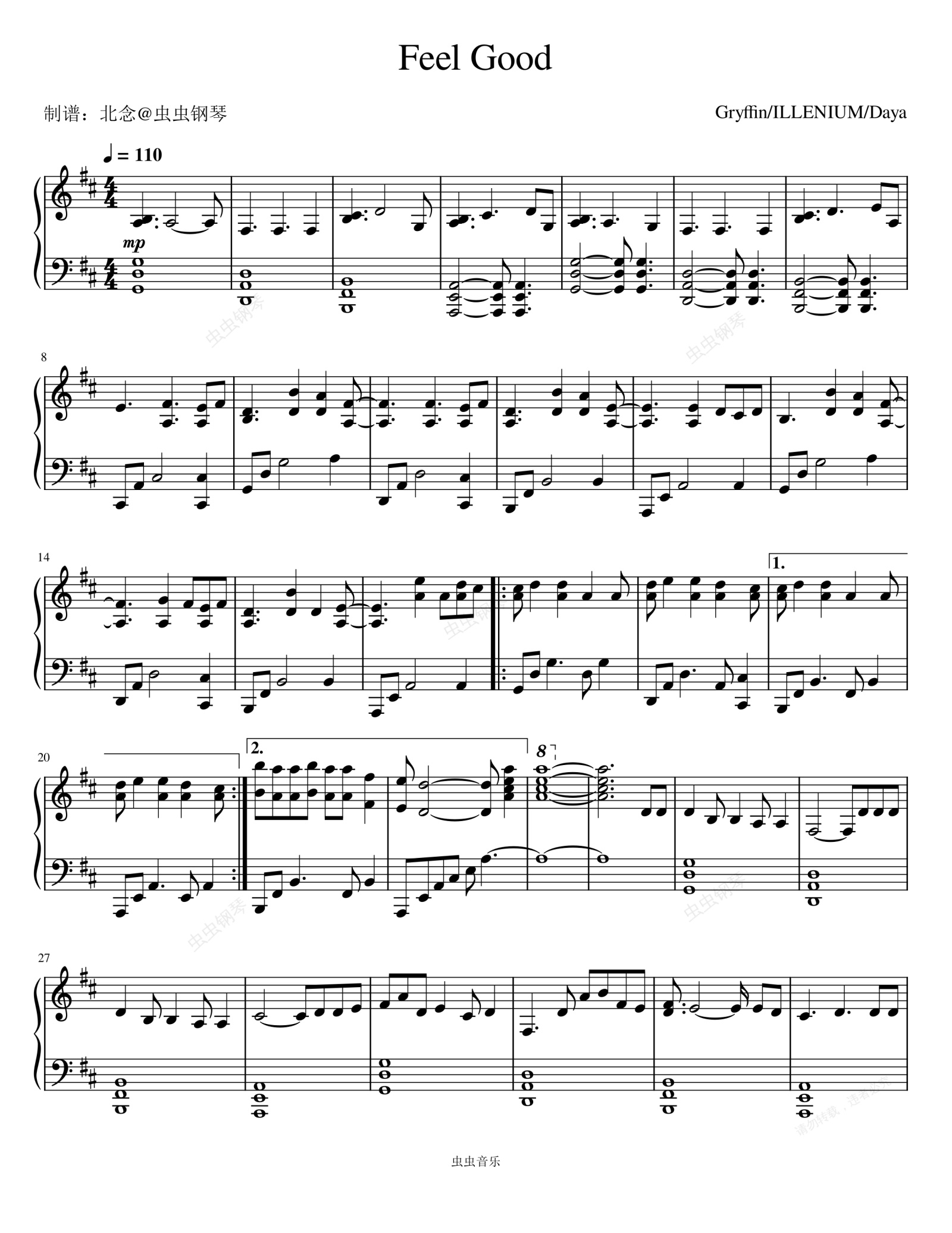 钢琴谱:Feel Good - Gryffin/ILLENIUM/Daya