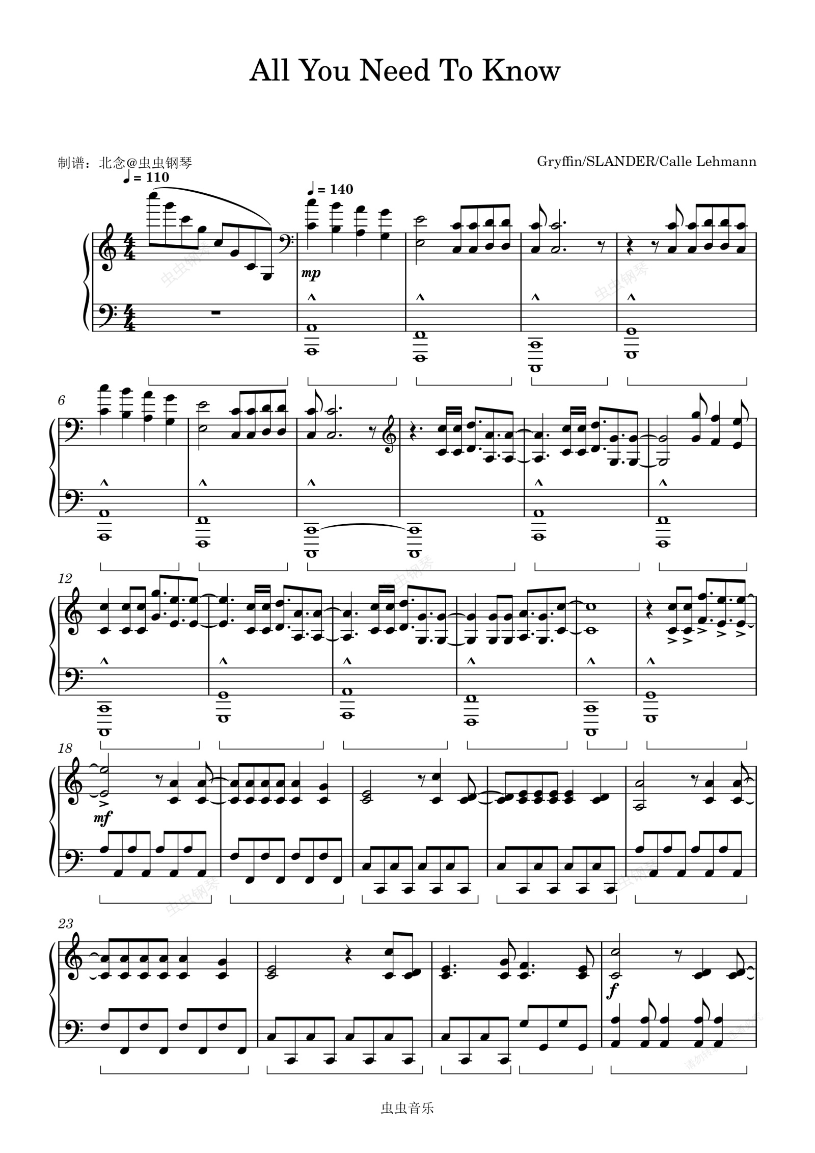 钢琴谱:All You Need To Know - Gryffin/SLANDER/Calle Lehmann