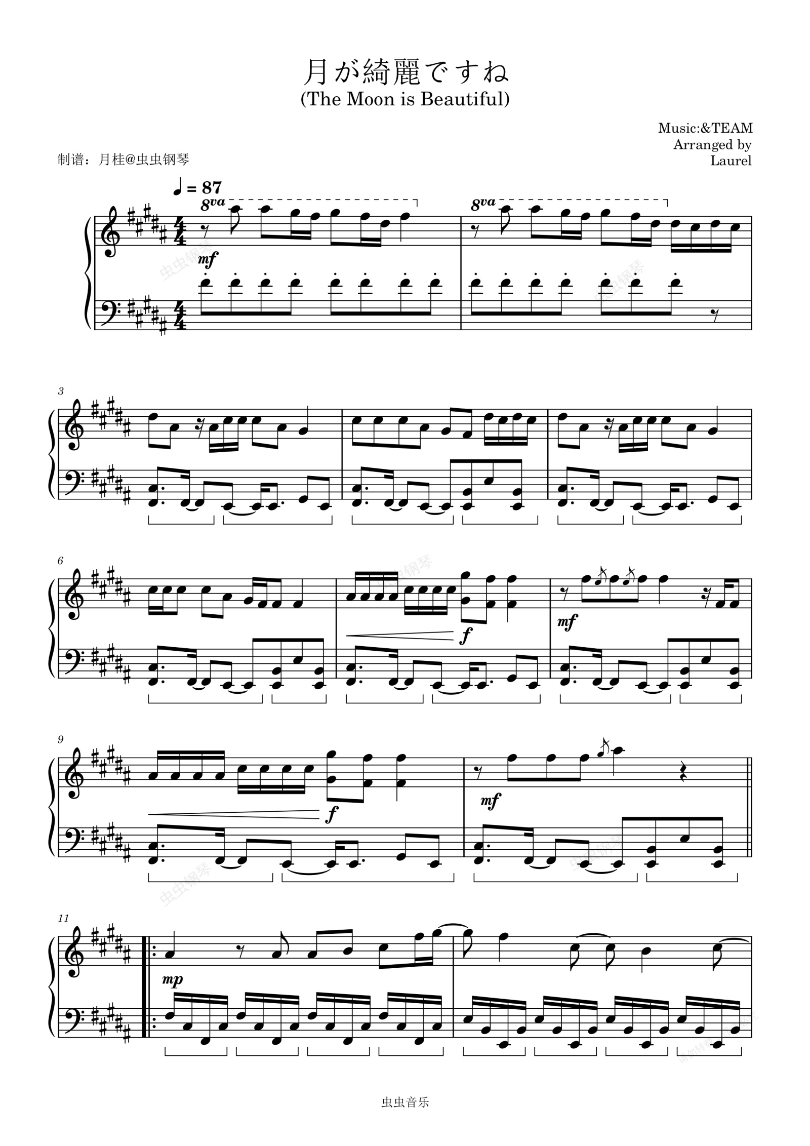 钢琴谱:月が綺麗ですね (月色真美)-&TEAM专辑《First Howling : WE》收录曲