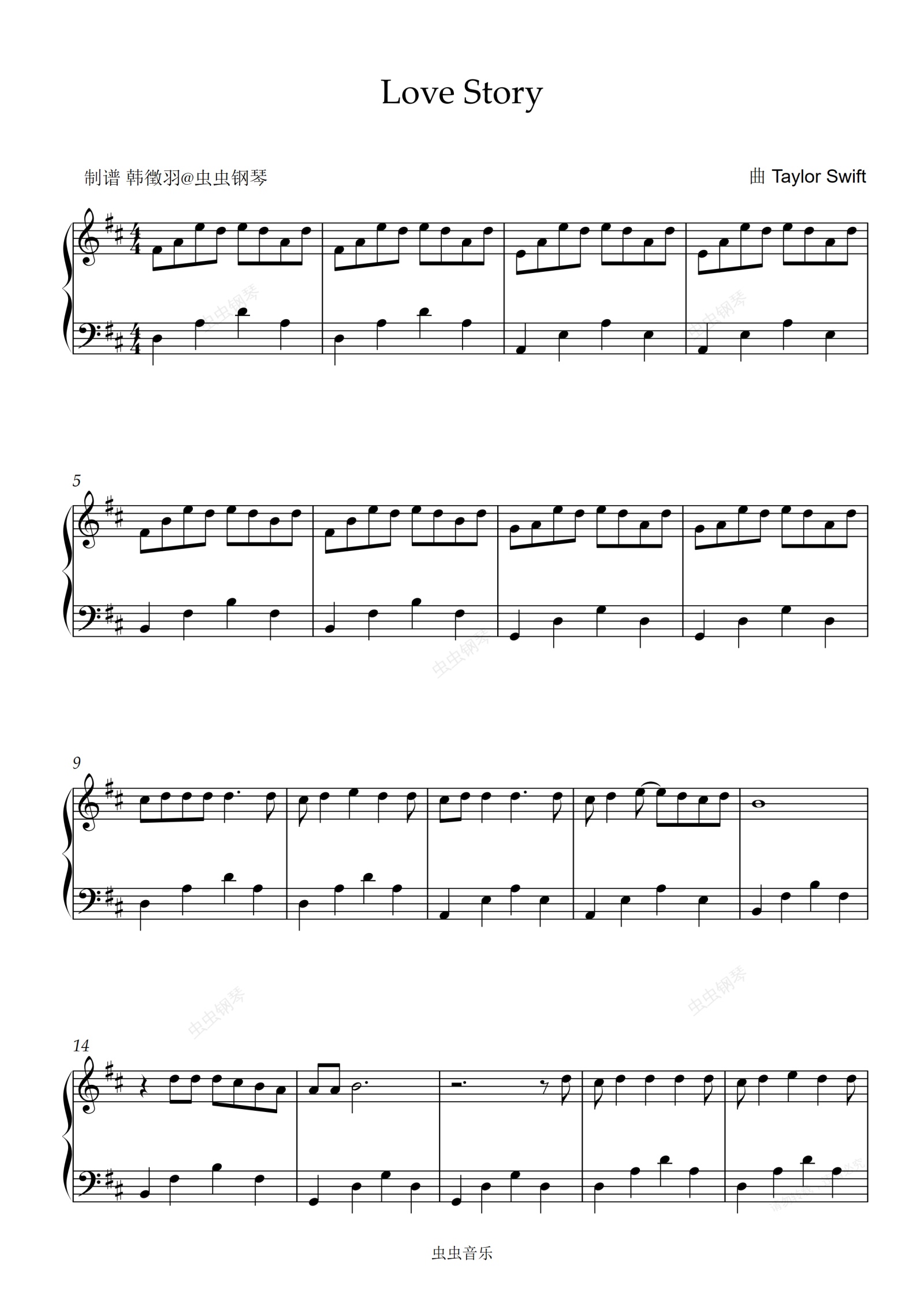 钢琴谱:Love Story 简单易弹原调D(左手跑动版)