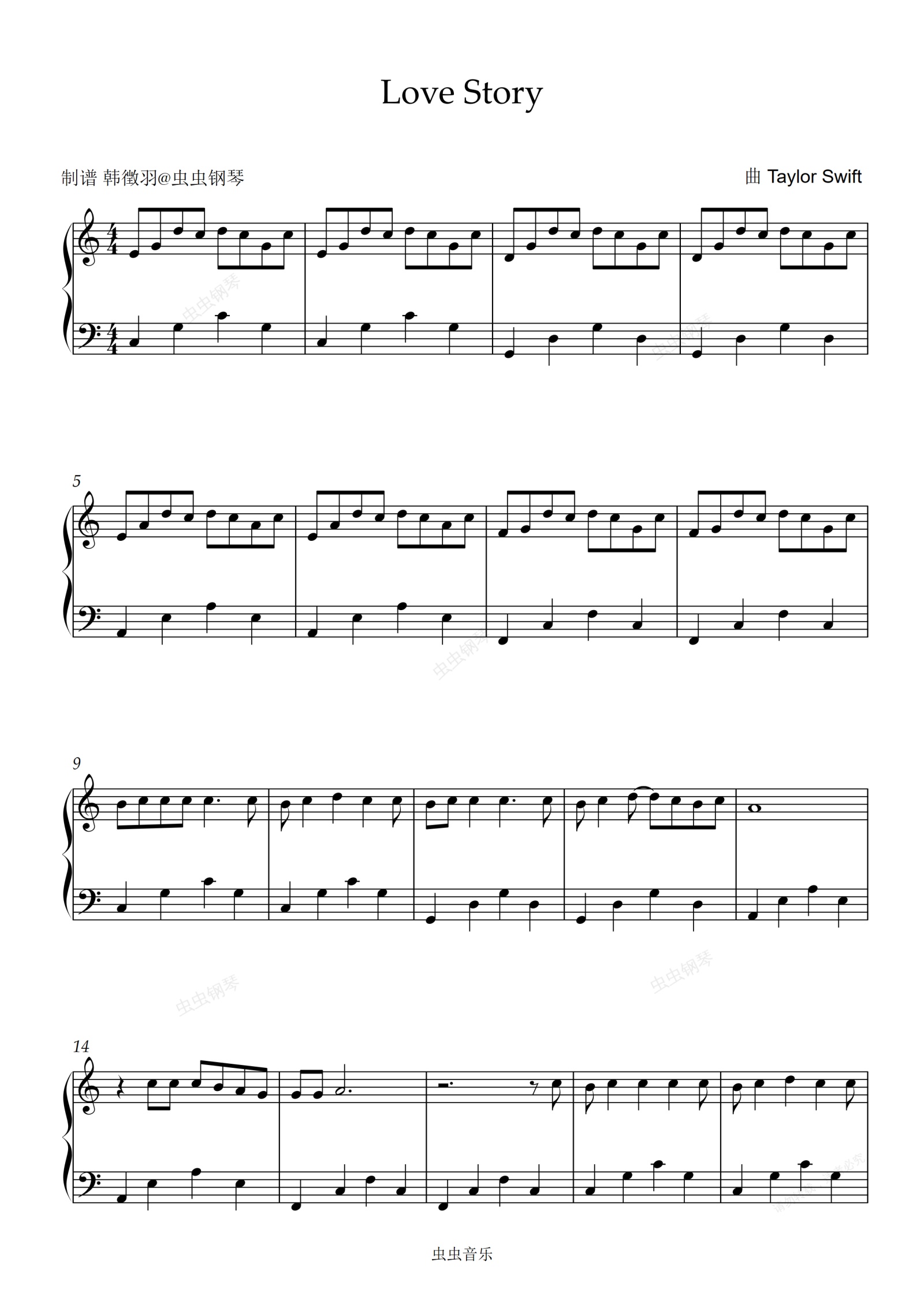 钢琴谱:Love Story  简单易弹C调(左手跑动版)