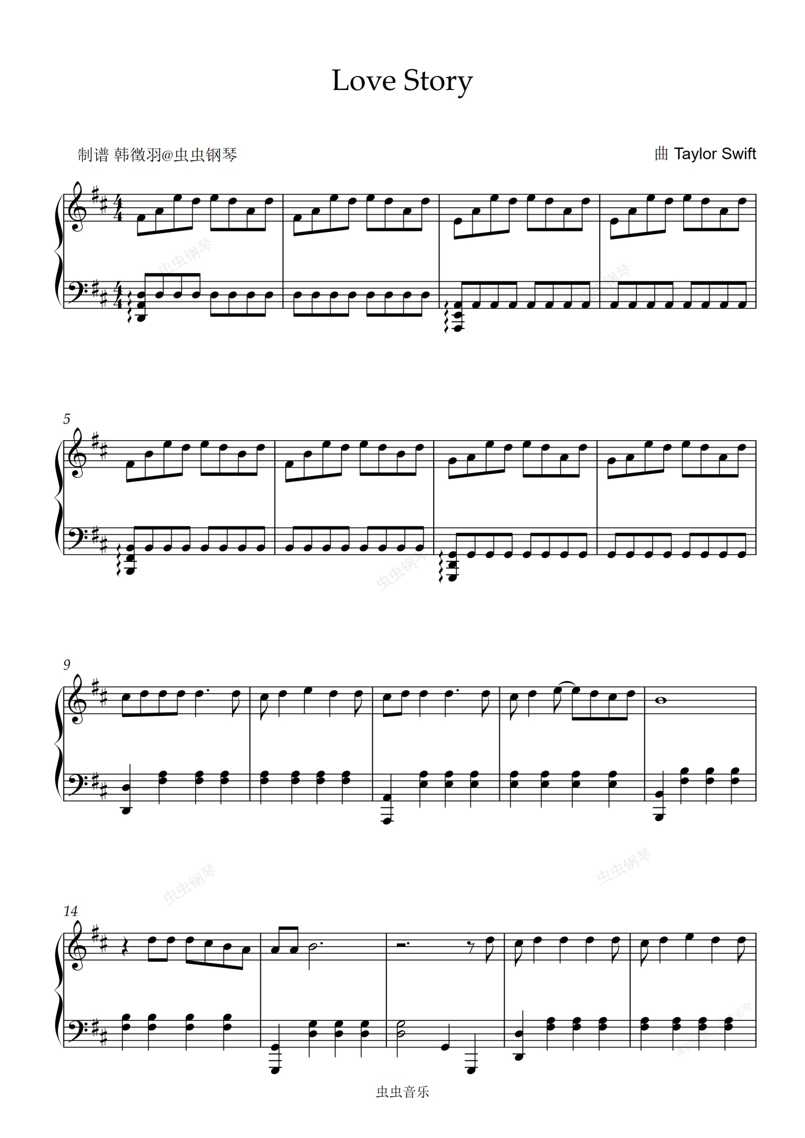 钢琴谱:Love Story 好听易弹版D调 超燃适合初学