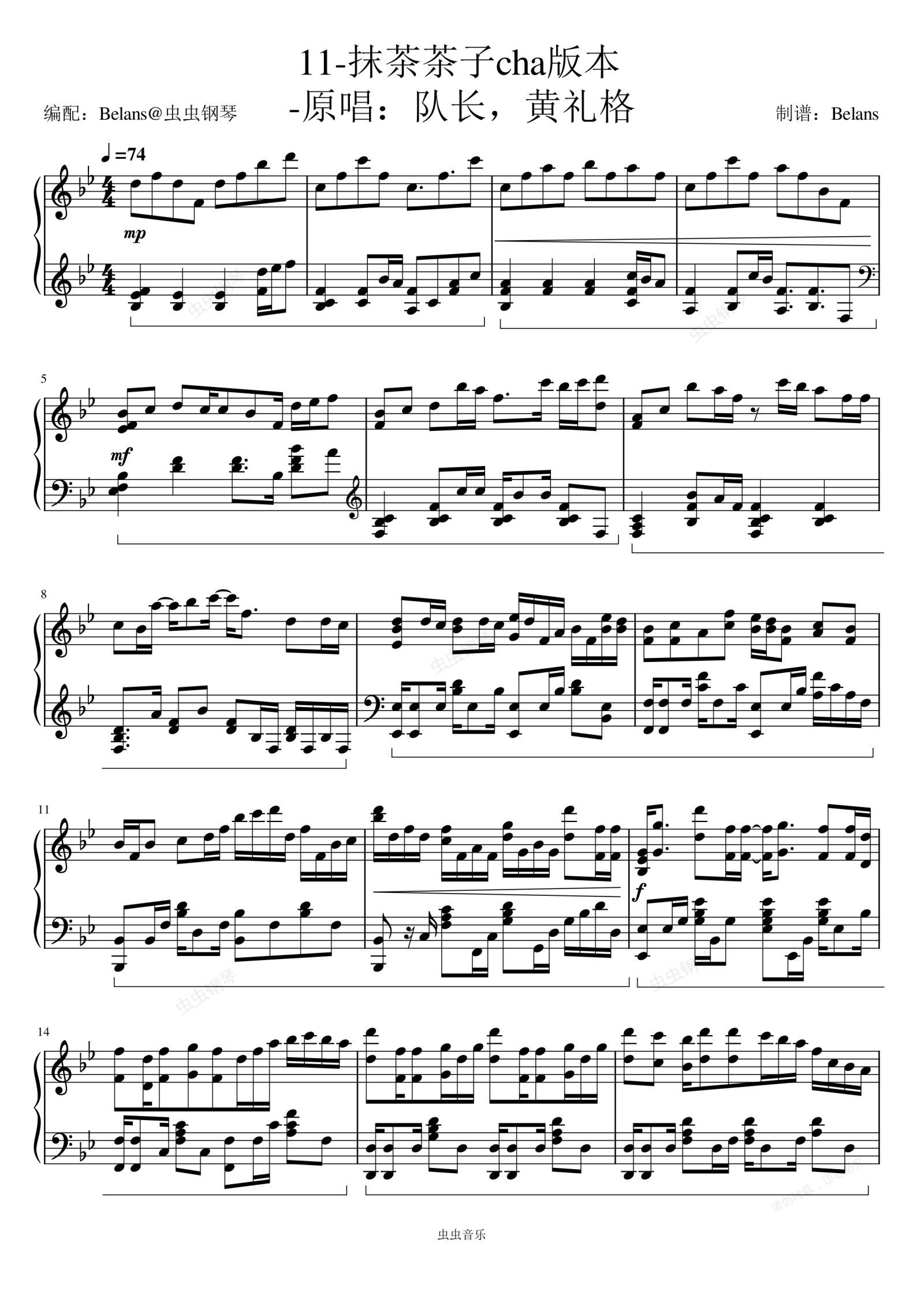 钢琴谱:11-抹茶茶子cha版本 原唱:队长,黄礼格