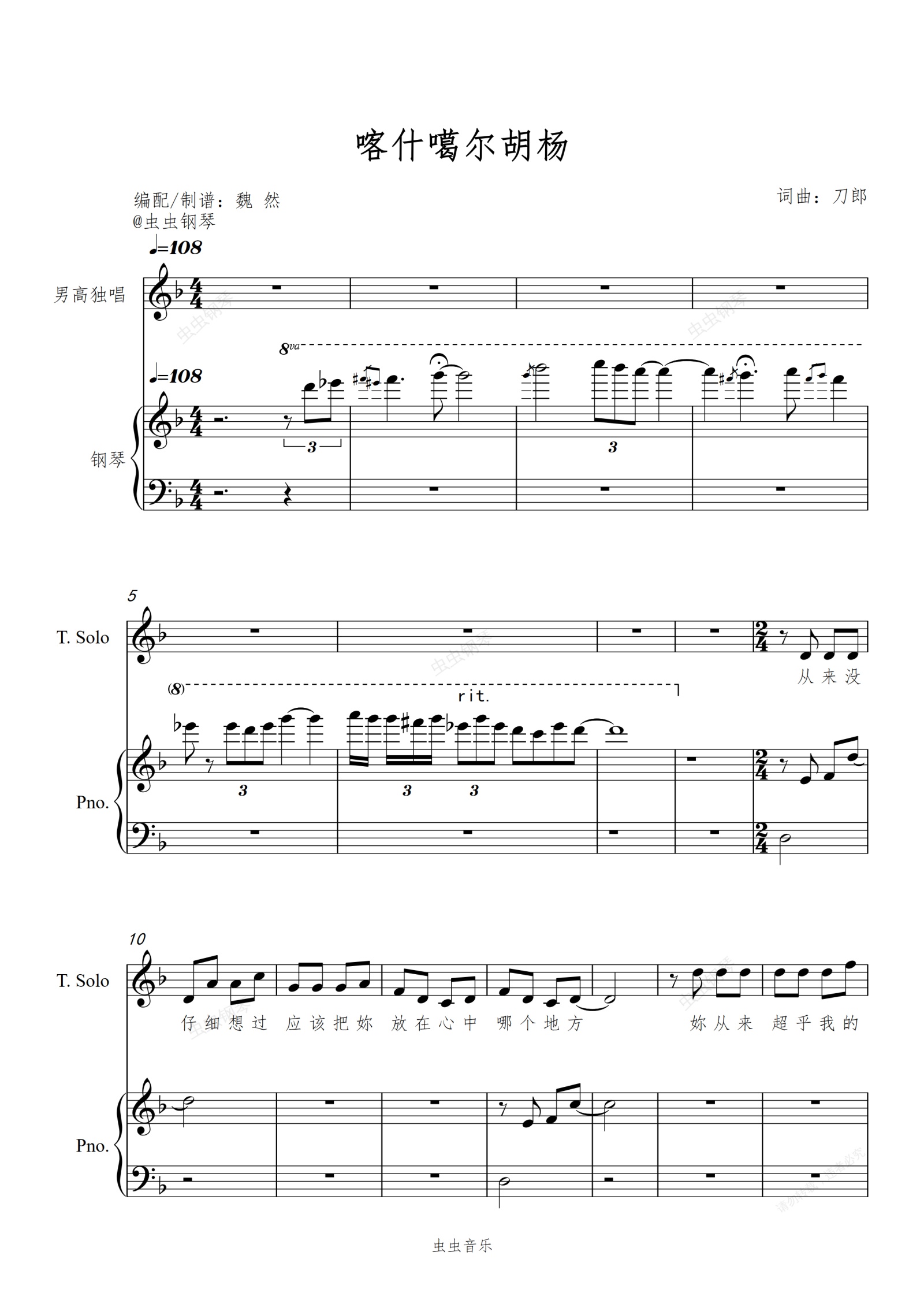钢琴谱:喀什噶尔胡杨(正谱)——『忧伤歌声』