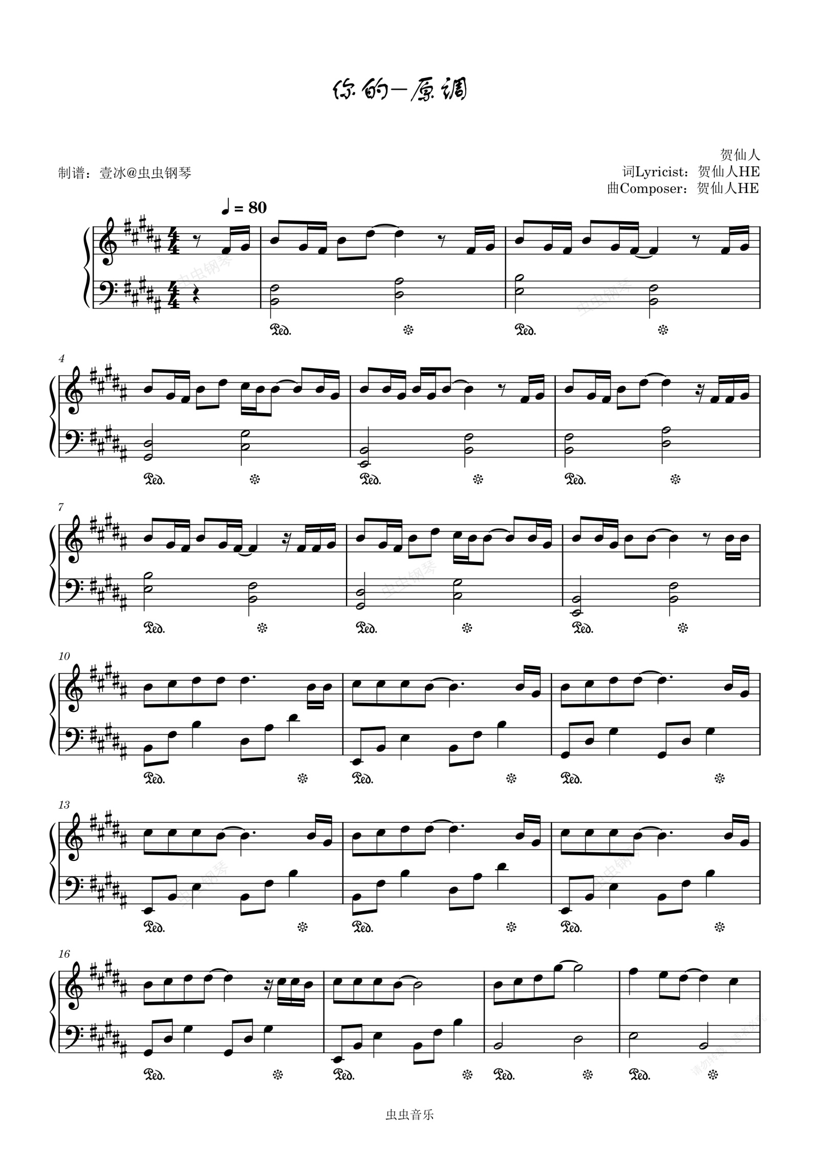 钢琴谱:【抖音热曲】你的//贺仙人-原调 简单易上手