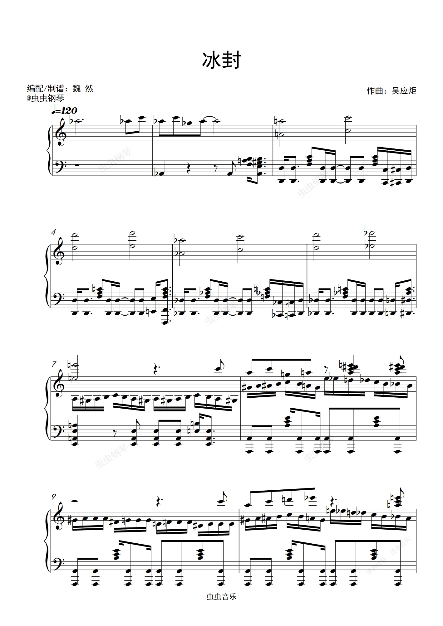 钢琴谱:【葫芦兄弟】冰封(四手联弹)——『忧伤歌声』