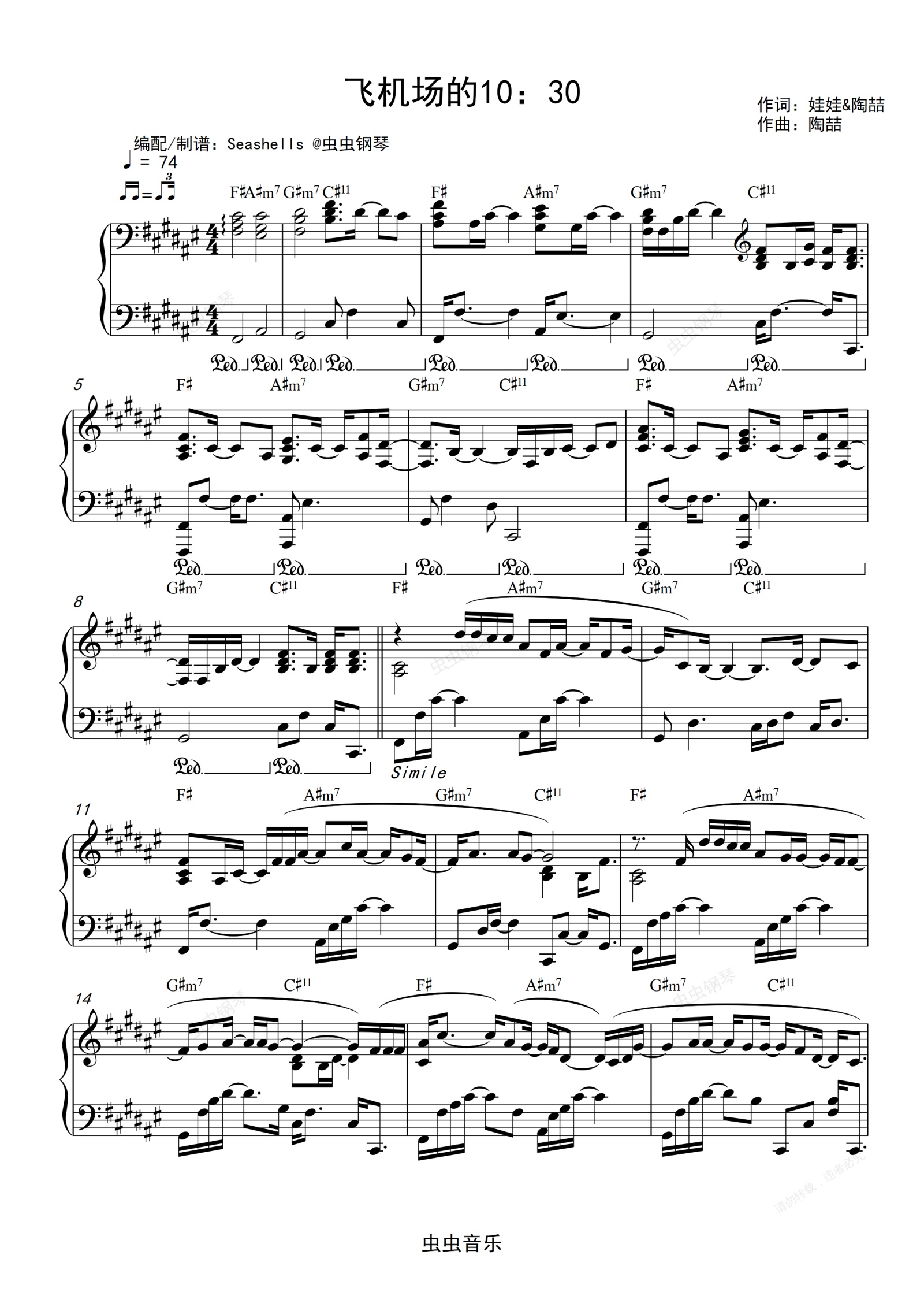 钢琴谱:陶喆-《飞机场的10:30》精编钢琴独奏 原调